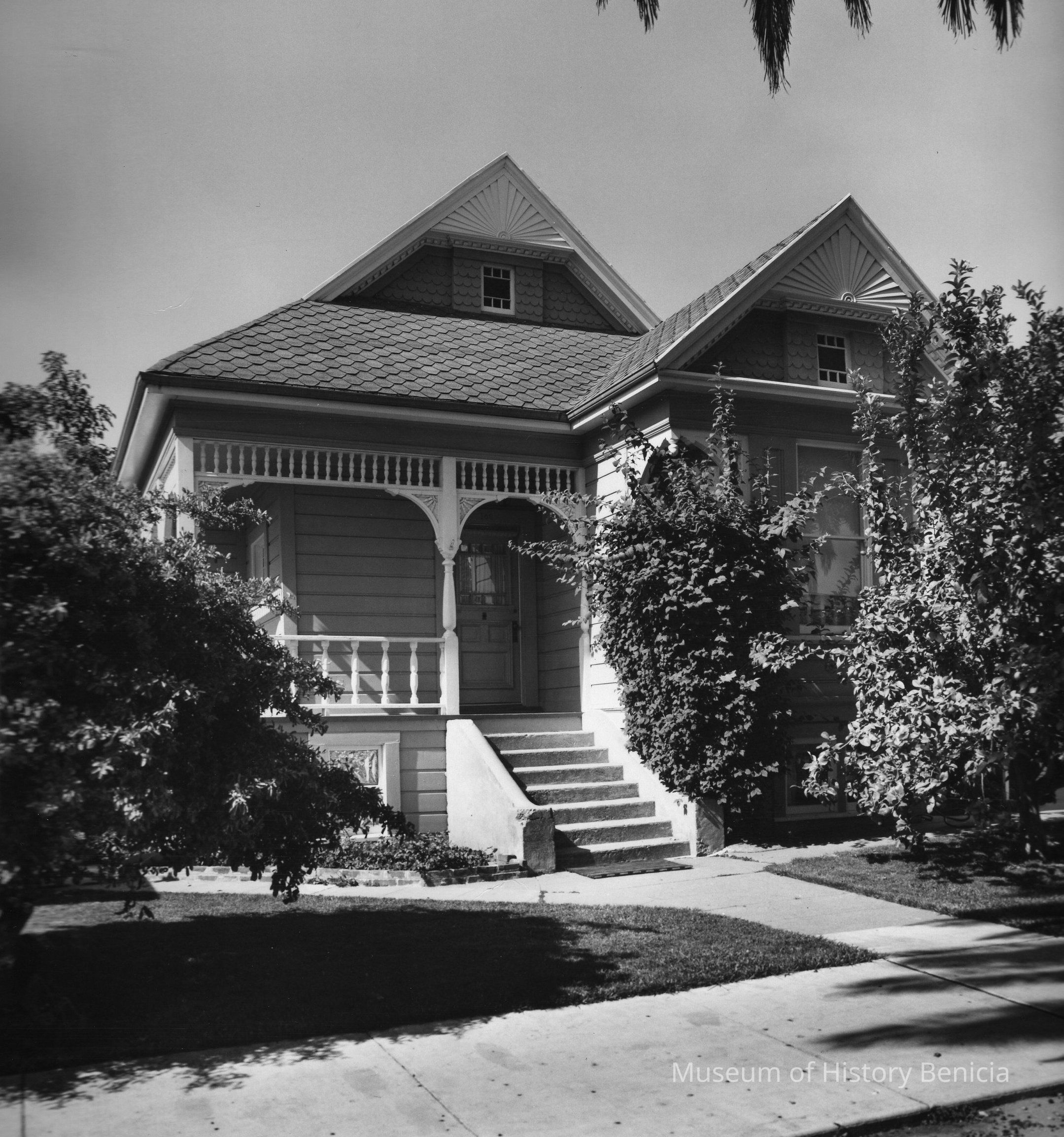 B/W photo of house at 186 West J Street in Benicia. Photo is Figure 79 in Bruegmann book.