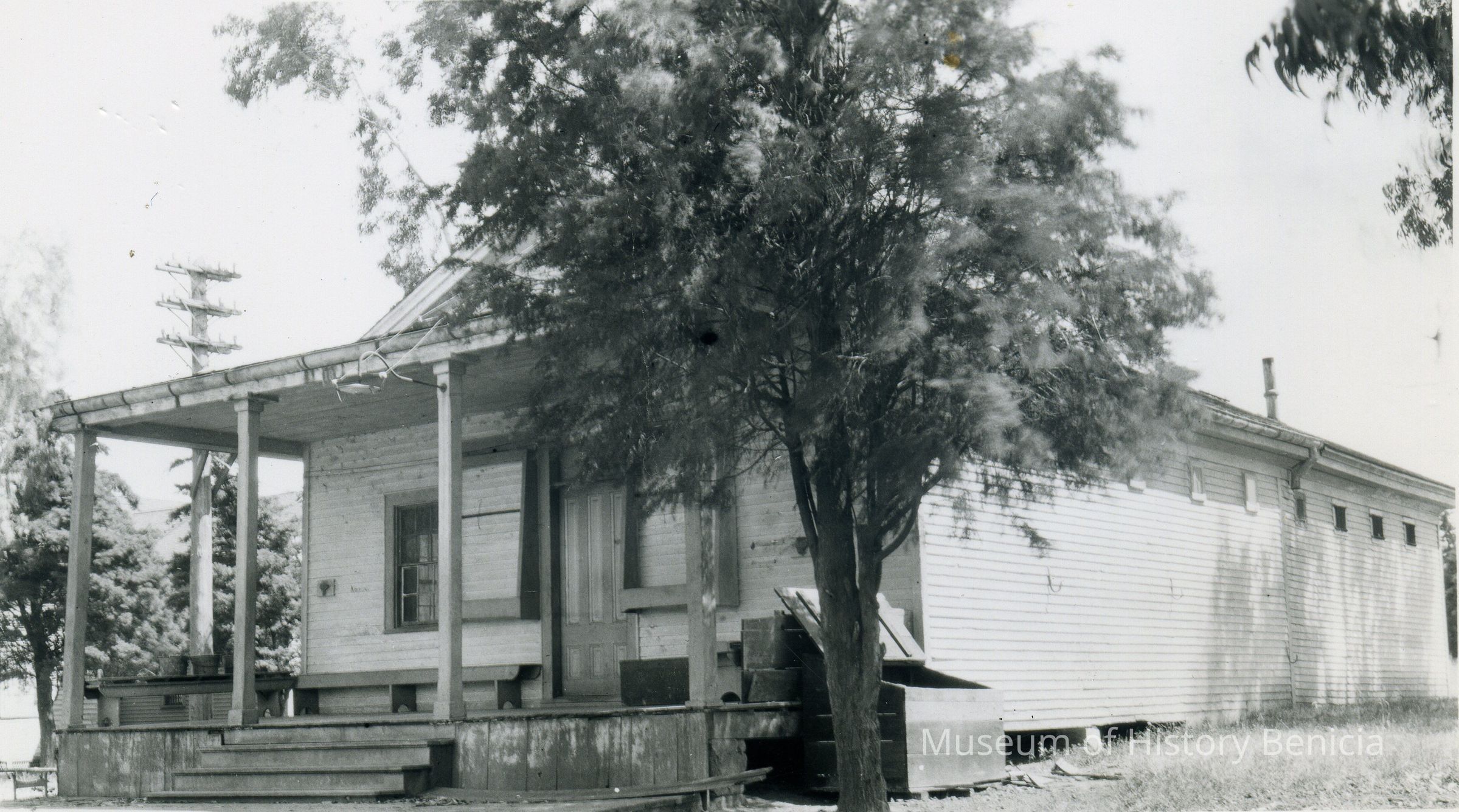 B/w photograph of a building at the Benicia Barracks. The Lenoir Miller Collection.