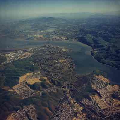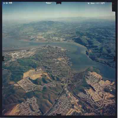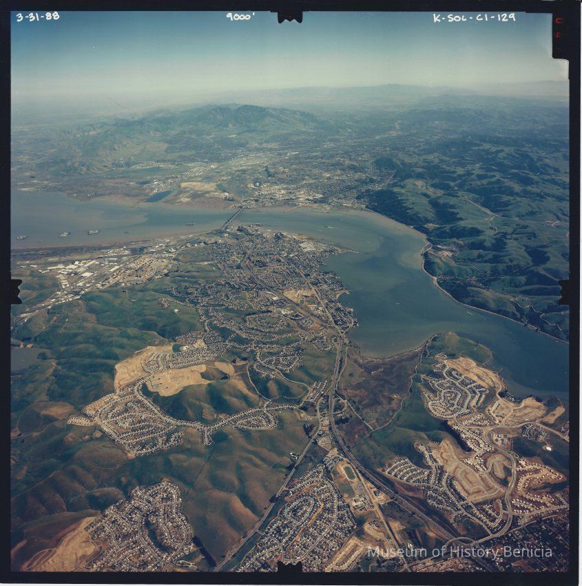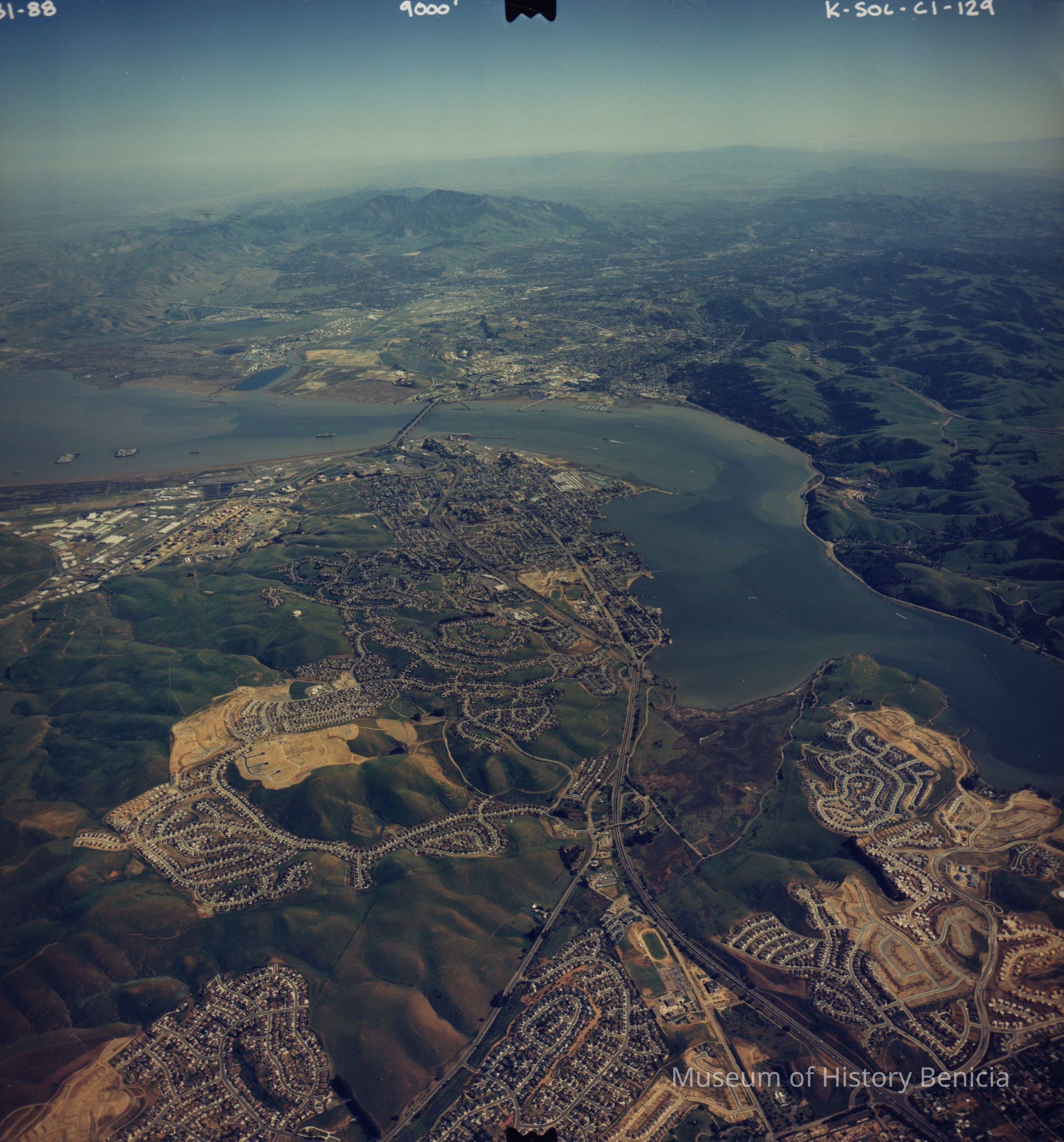 Color aerial photo taken from 9000 ft. looking southeast over Benicia toward Mount Diablo. Glen Cove development in lower right corner.Collection