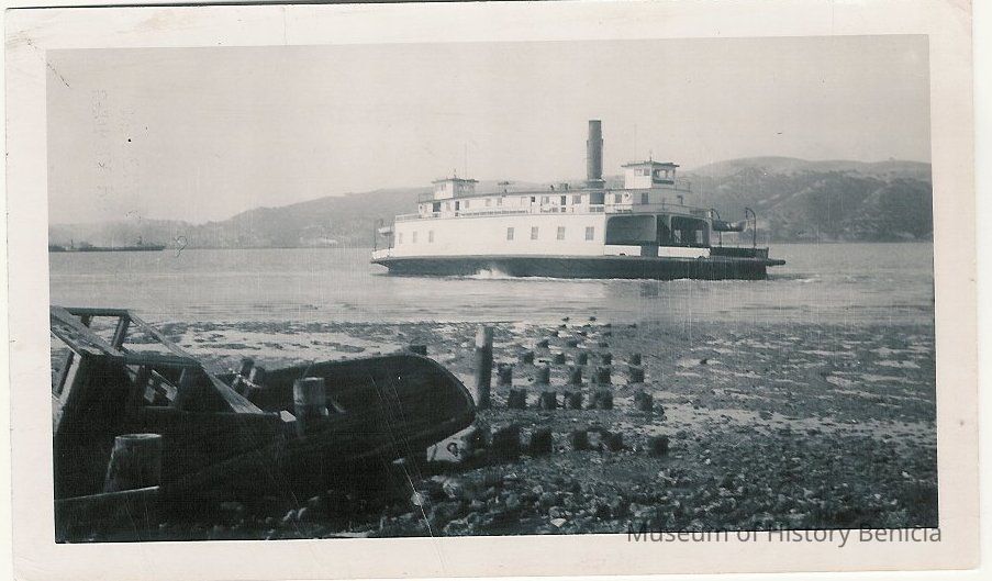 B/w photograph of the ferry "City of San Rafael." Text on the reverse of the photograph reads: "'The City of San Rafael' one of the present ferry boats now in use. This view shows her heading for the Martinez side, as she pulled out of the Benicia slips." The Lenoir Miller Collection.Collection