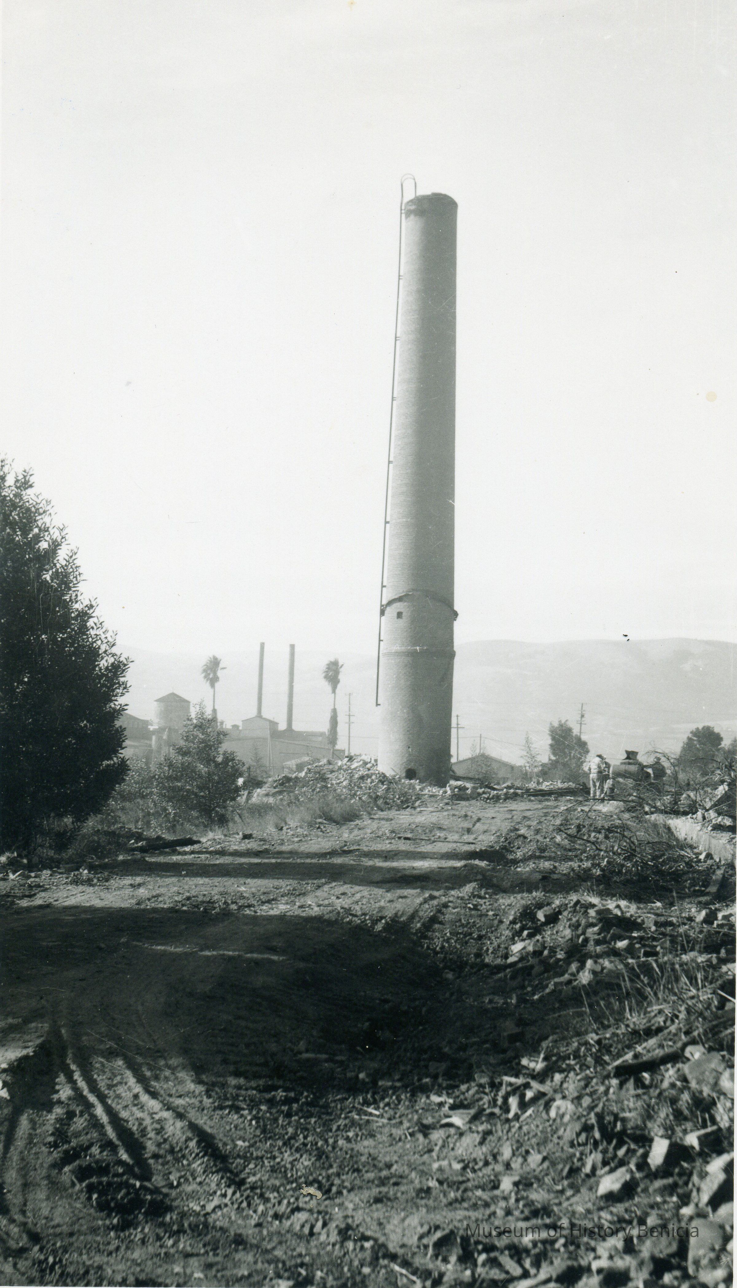 B/W photograph of a tannery chimney