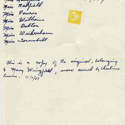 It also says this is a copy of the original owned by Mary Wingfield, now owned by Charline Erwin. and the date 11/1/1951Collection