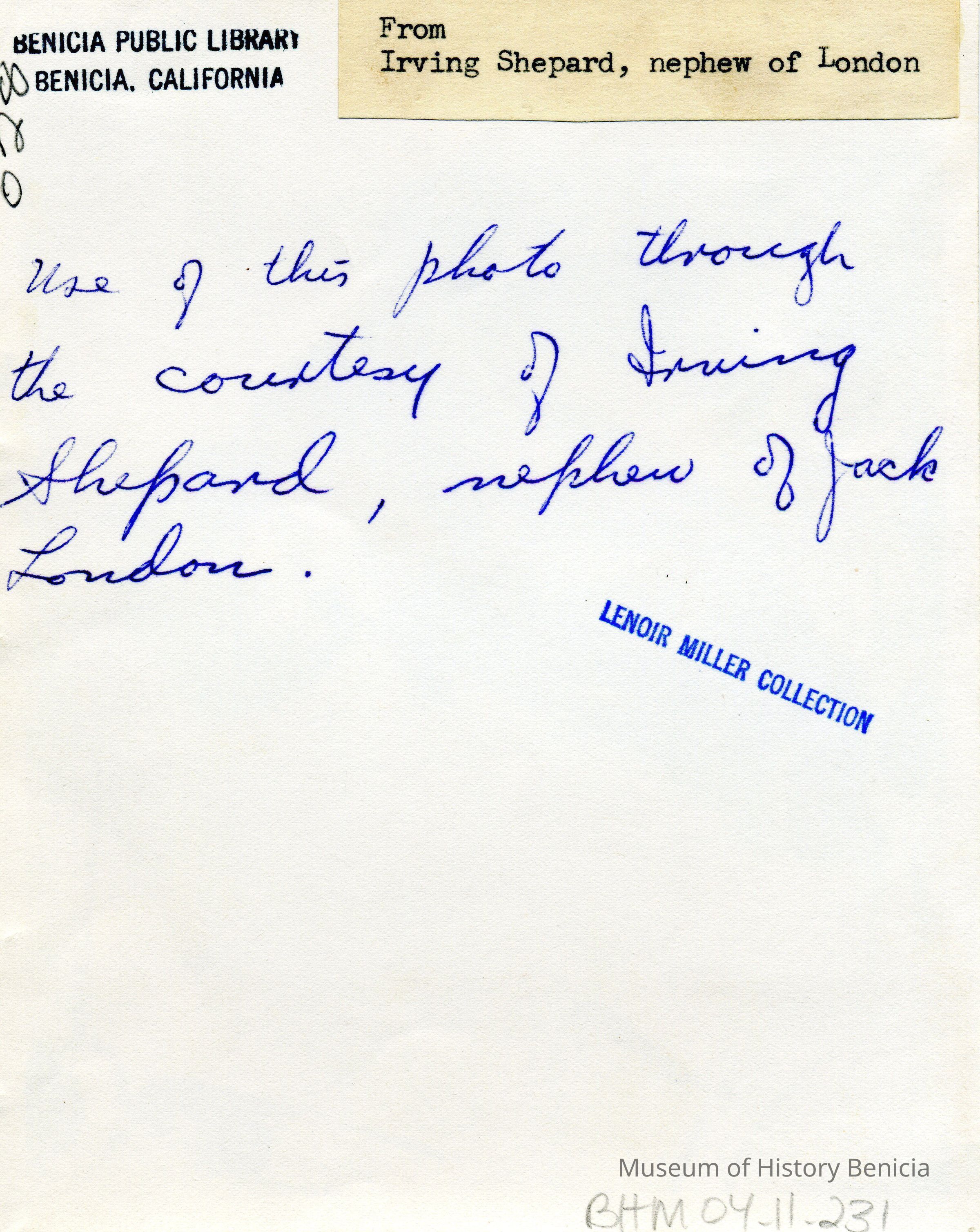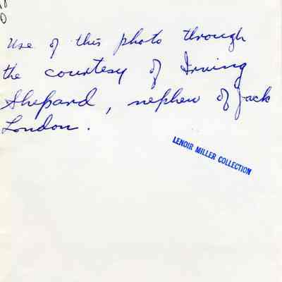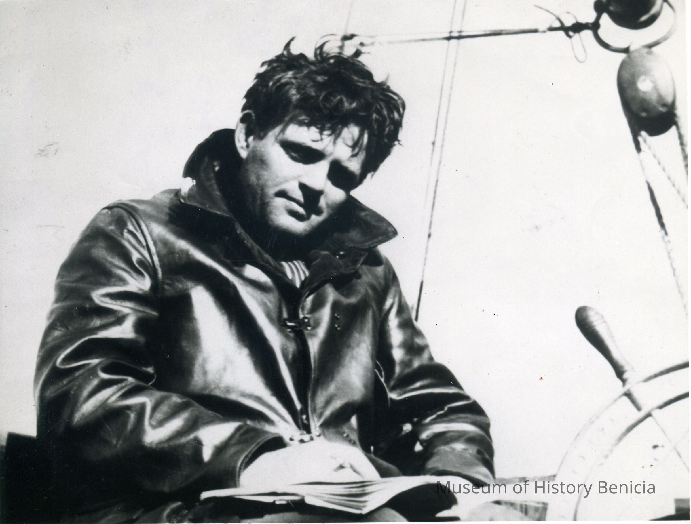 B/W photograph of Jack London on one of his boats, used through the courtesy of his nephew Irving Shephard.