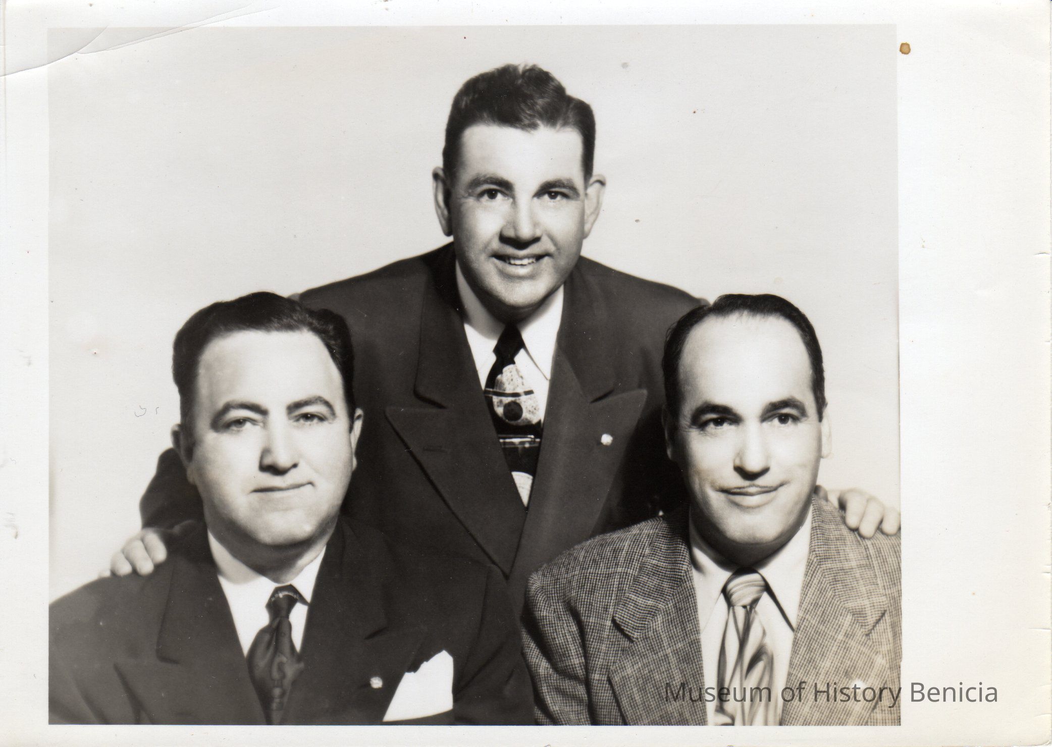 Photograph of three men, the one on the right is James Lemos (former Benicia Mayor) the other two have not been identified.
