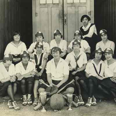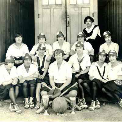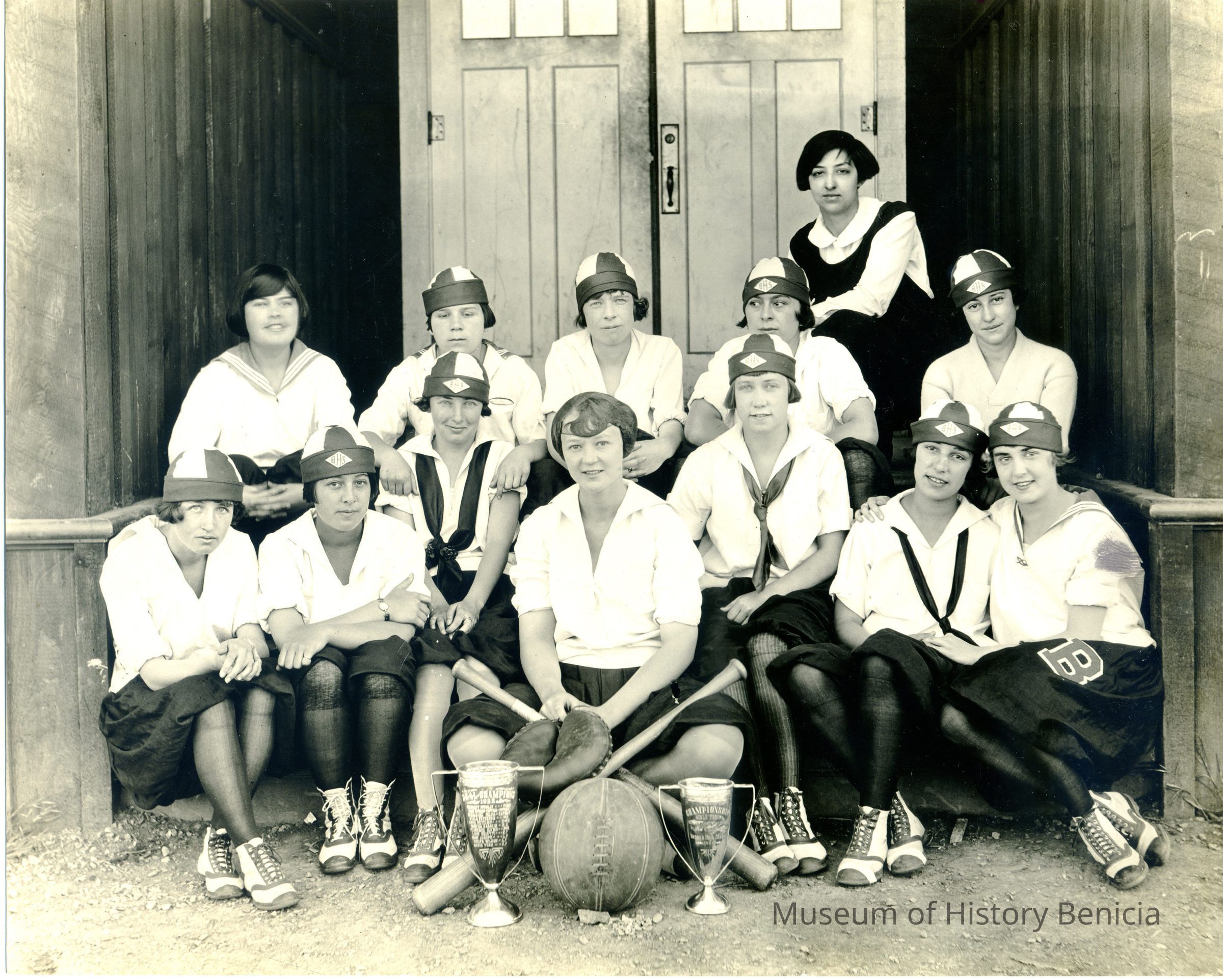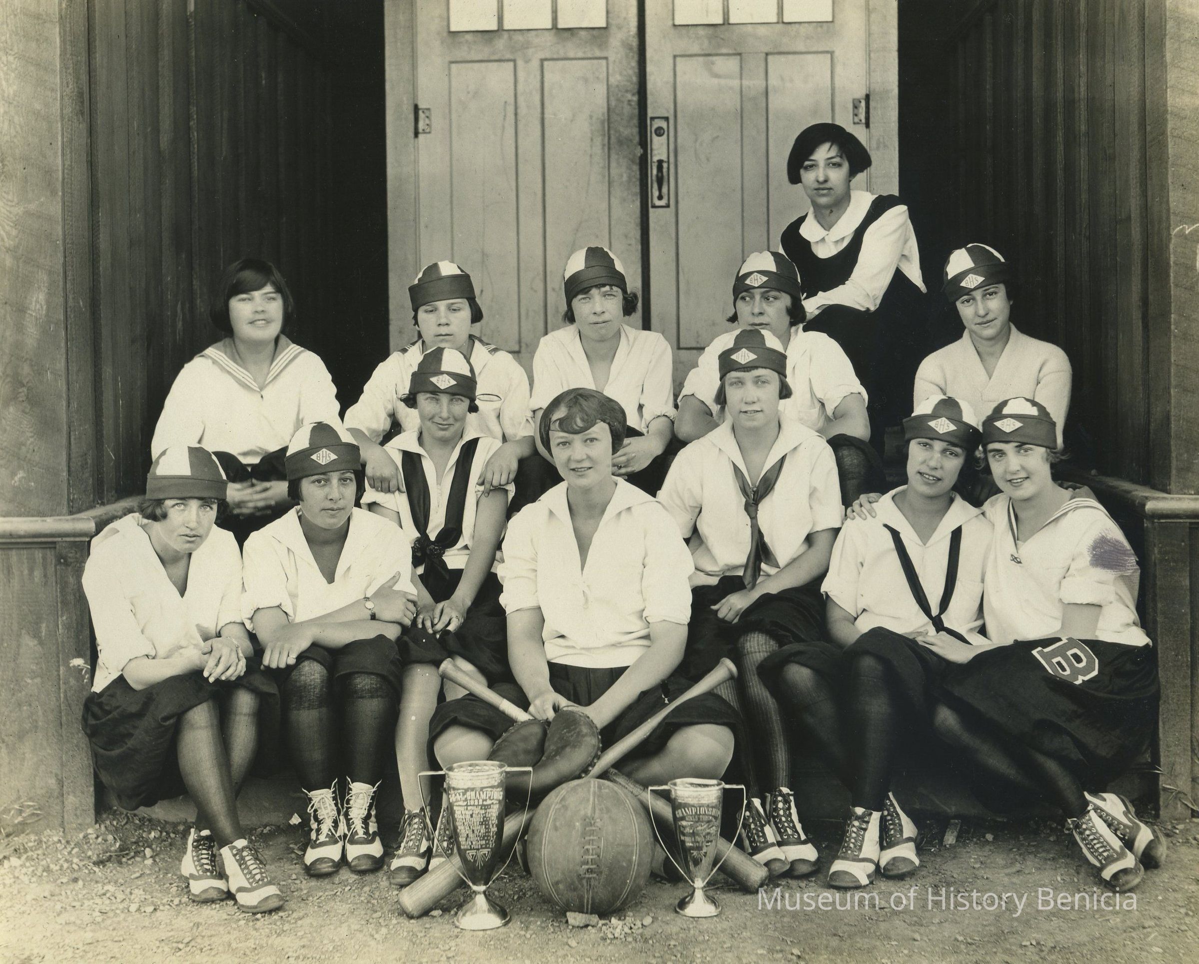 BHS girls softball and/or basketball team with their championship trophies.