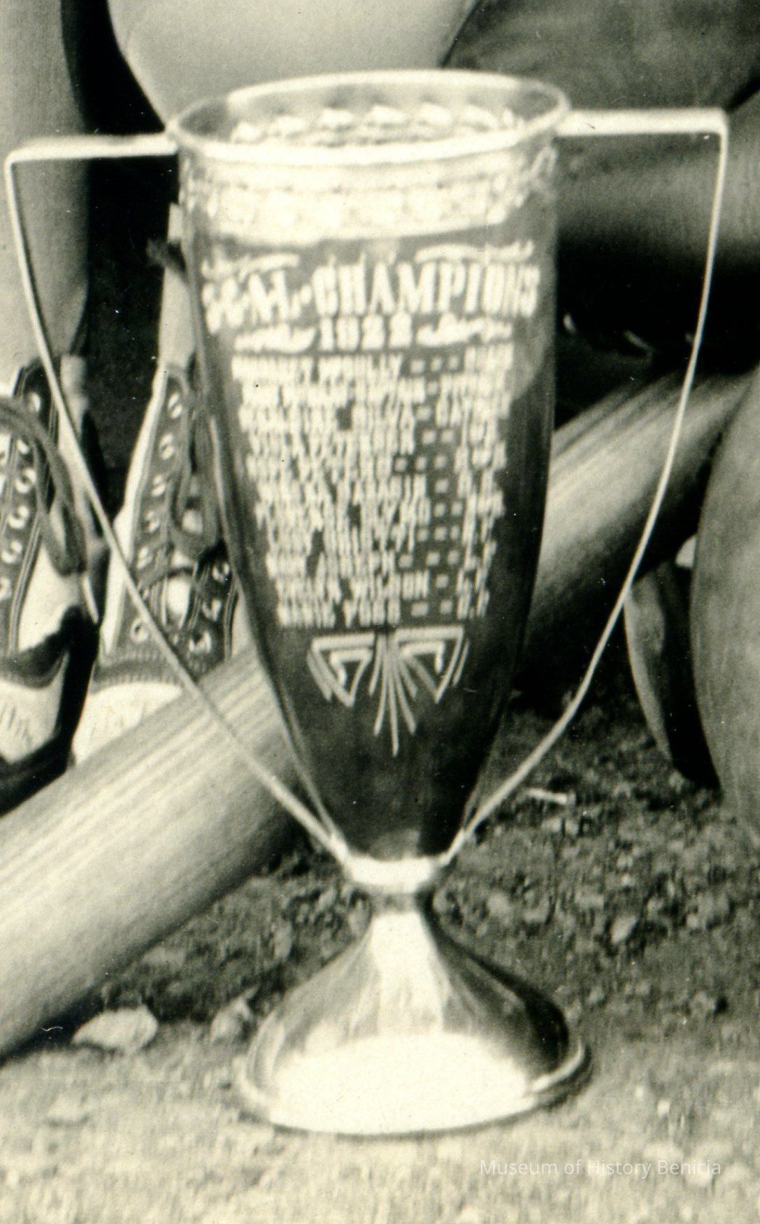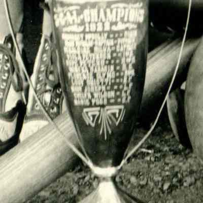 The trophy on the left appears to read SCAL Champions 1922 above a list of unreadable names.Collection