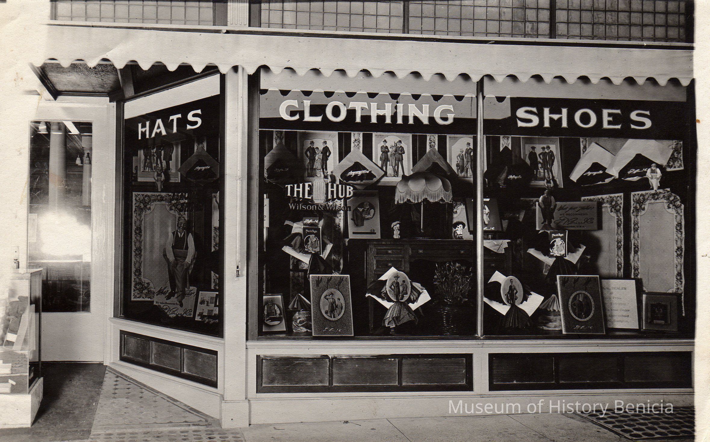 Photo of The Hub: Wilson and Wilson. Photo taken outside the store looking into the front window. The photo is a cropped version of the image on the negative numbered 2004.001.0105