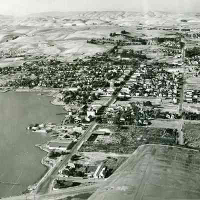 Mostly empty hills are at the top of the photo; the original few homes of the Southampton Development can be seen in the upper left. East Second Street is on the right of the photo; many empty lots are visible in all areas. To the left in the photo is what became Garske's Boat Yard.Collection