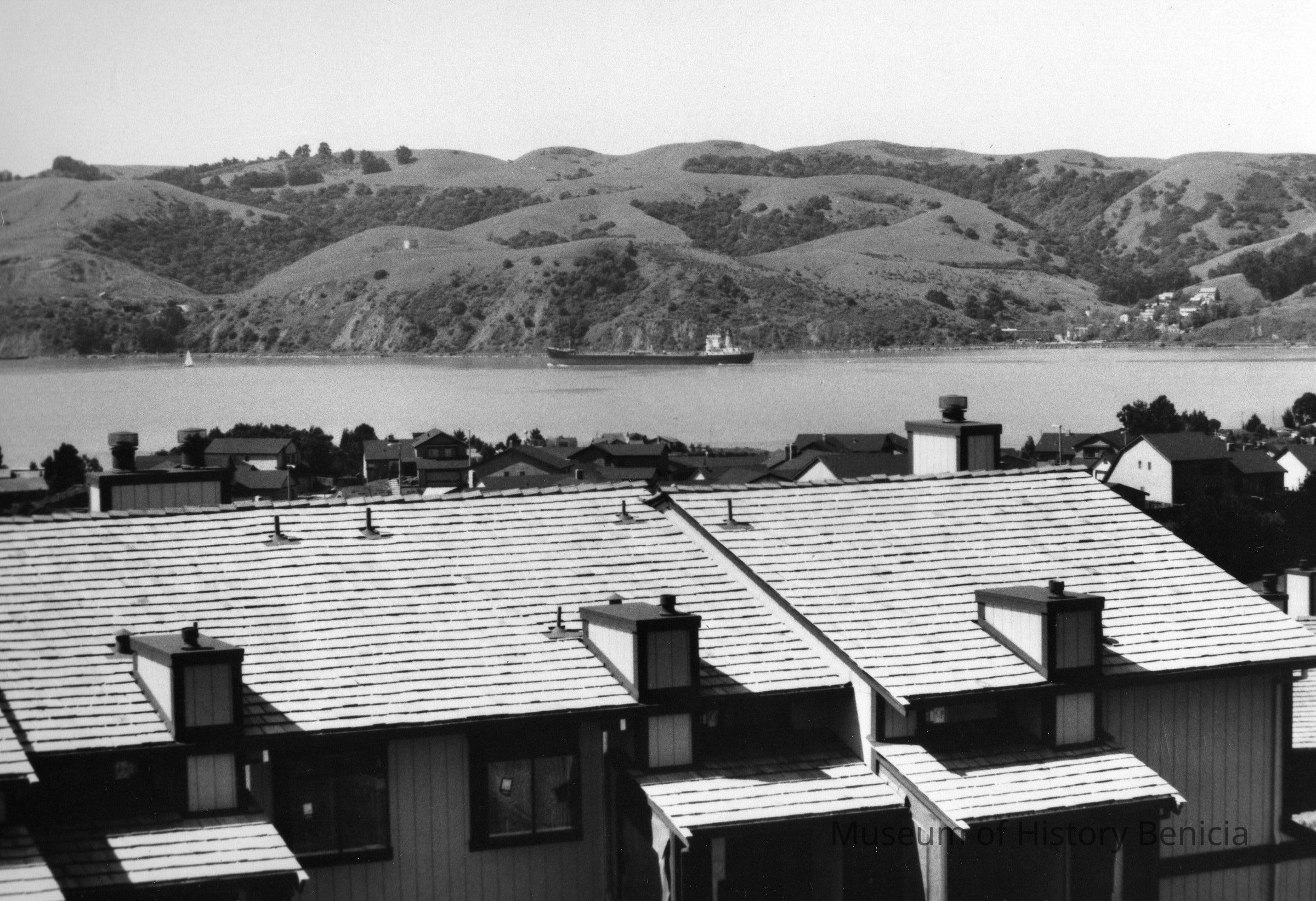 B/W The Terrace, Southampton development. In the background are the Contra Costa Hills and the Carquinez Straits.