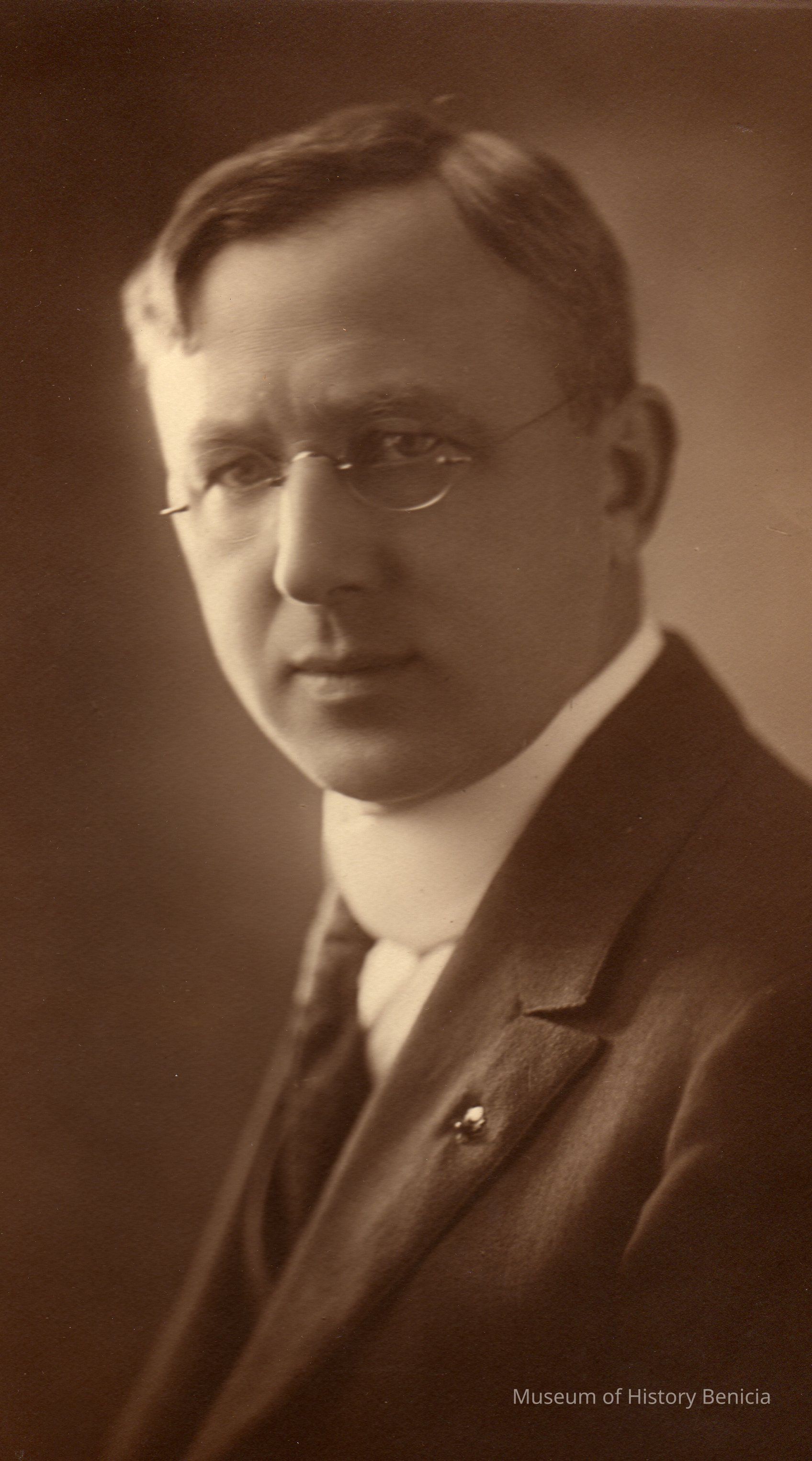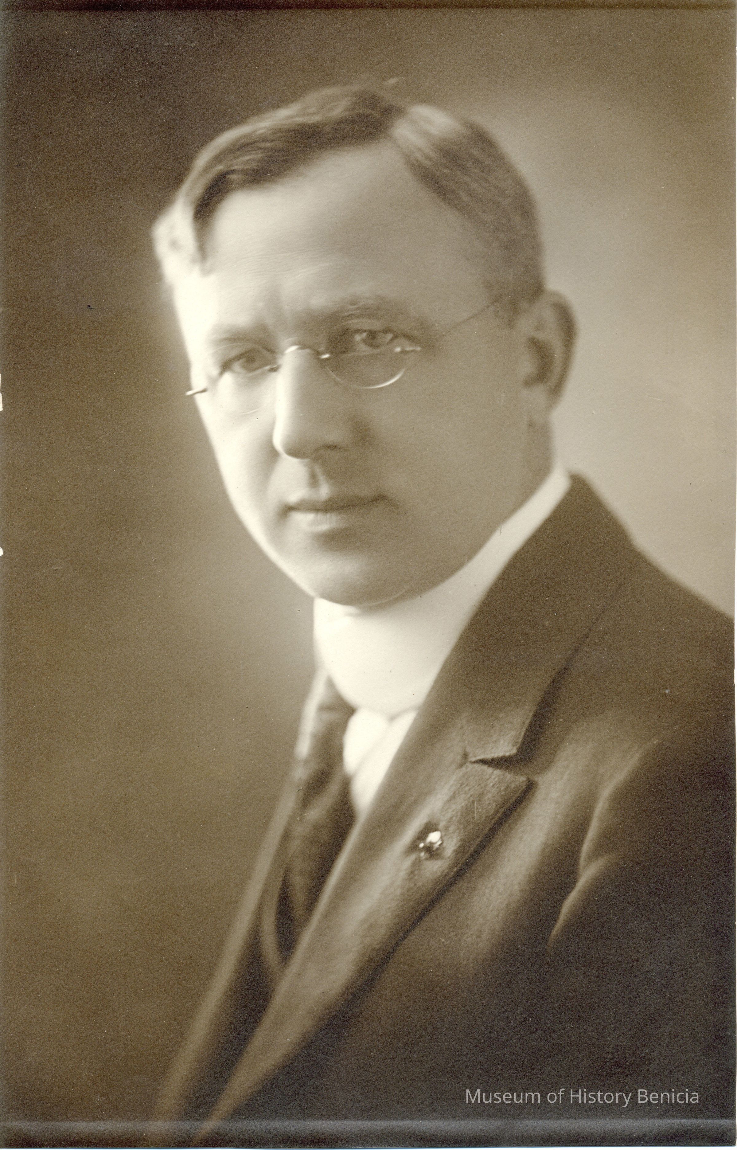 B/W photograph of an unidentified man. The gift papers mention a sepia portrait of a young Theodore Rueger which is 6.75 x 10.75. This photo seems to be that item. The frame in which the photo sits is slightly bigger than the photo.Collection