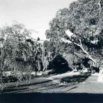B/W Trees and picnic tables at Southampton Park on Chelsea and Panorama.
