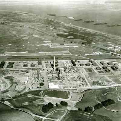 B/W aerial photo construction of Humble Oil Refinery (later Exxon and Valero)