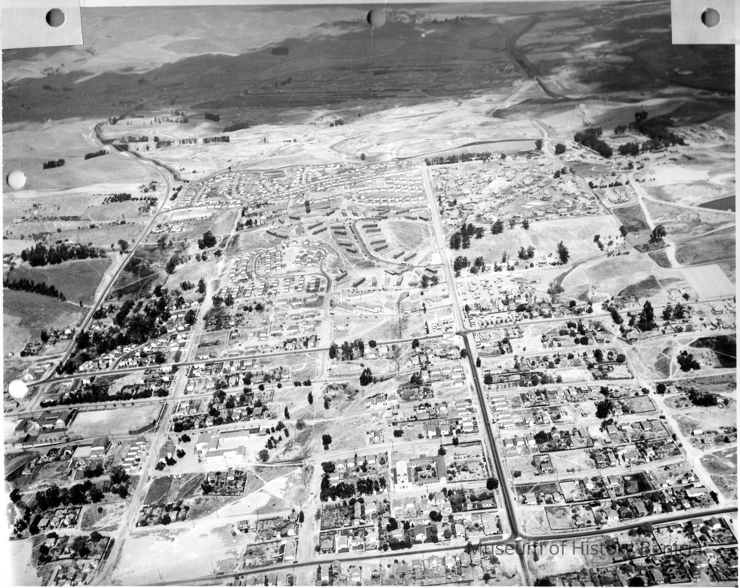 B/w Aerial View of Benicia Arsenal East side and hills beyond