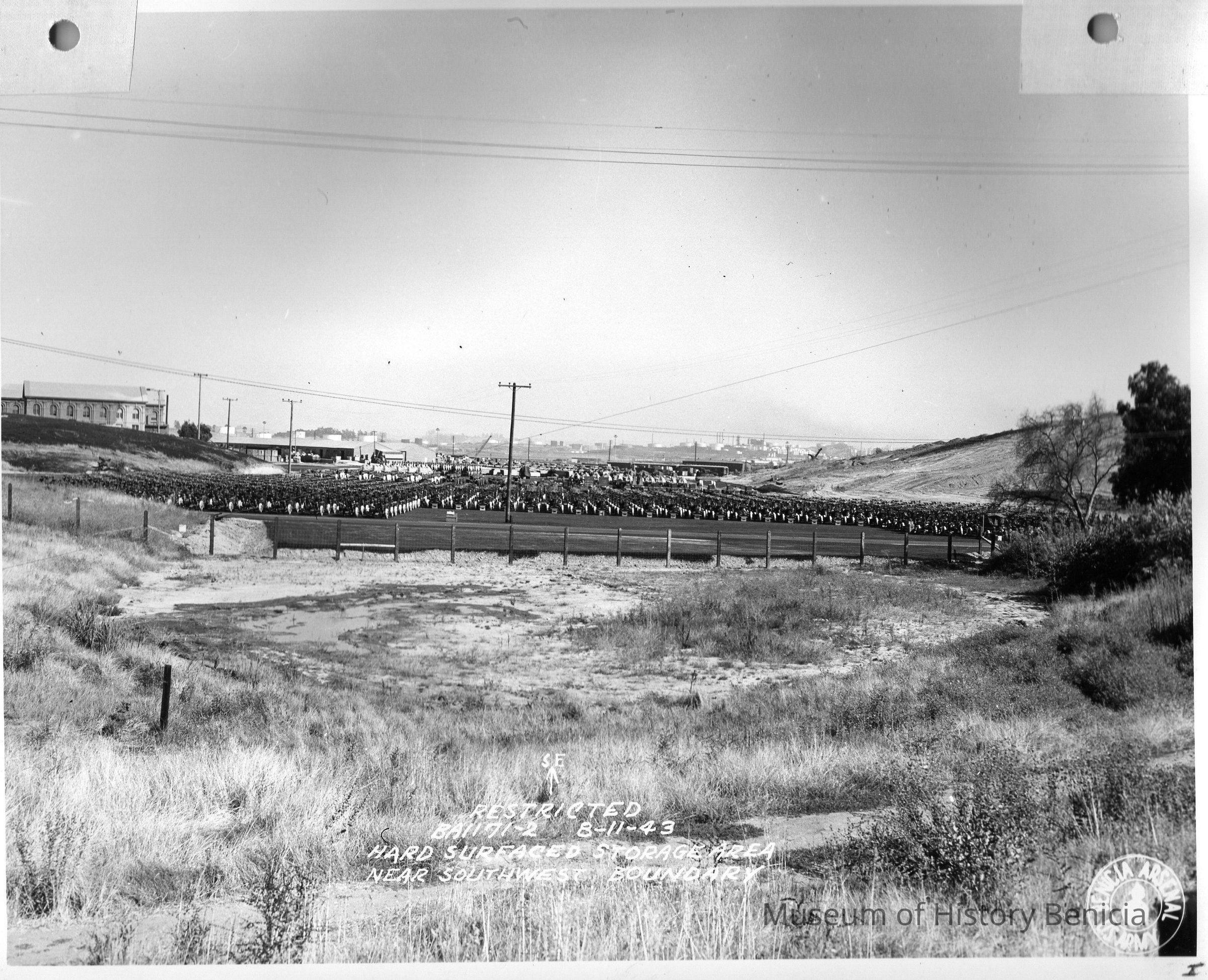 B/w Benicia Arsenal- hard surfaced storage area near southwest boundary. Image was Restricted.
