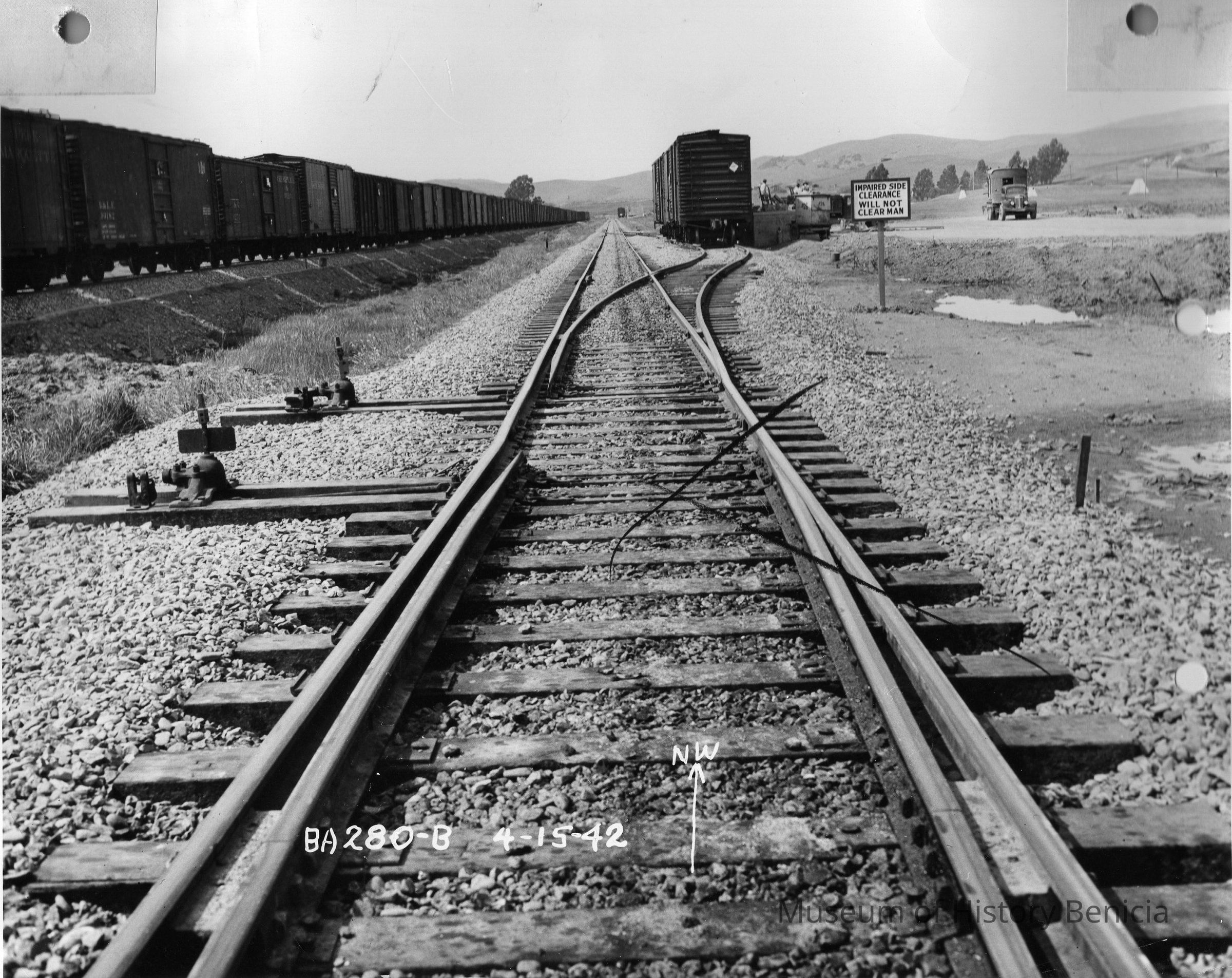 B/w Benicia Arsenal, Train Tracks looking Northwest.