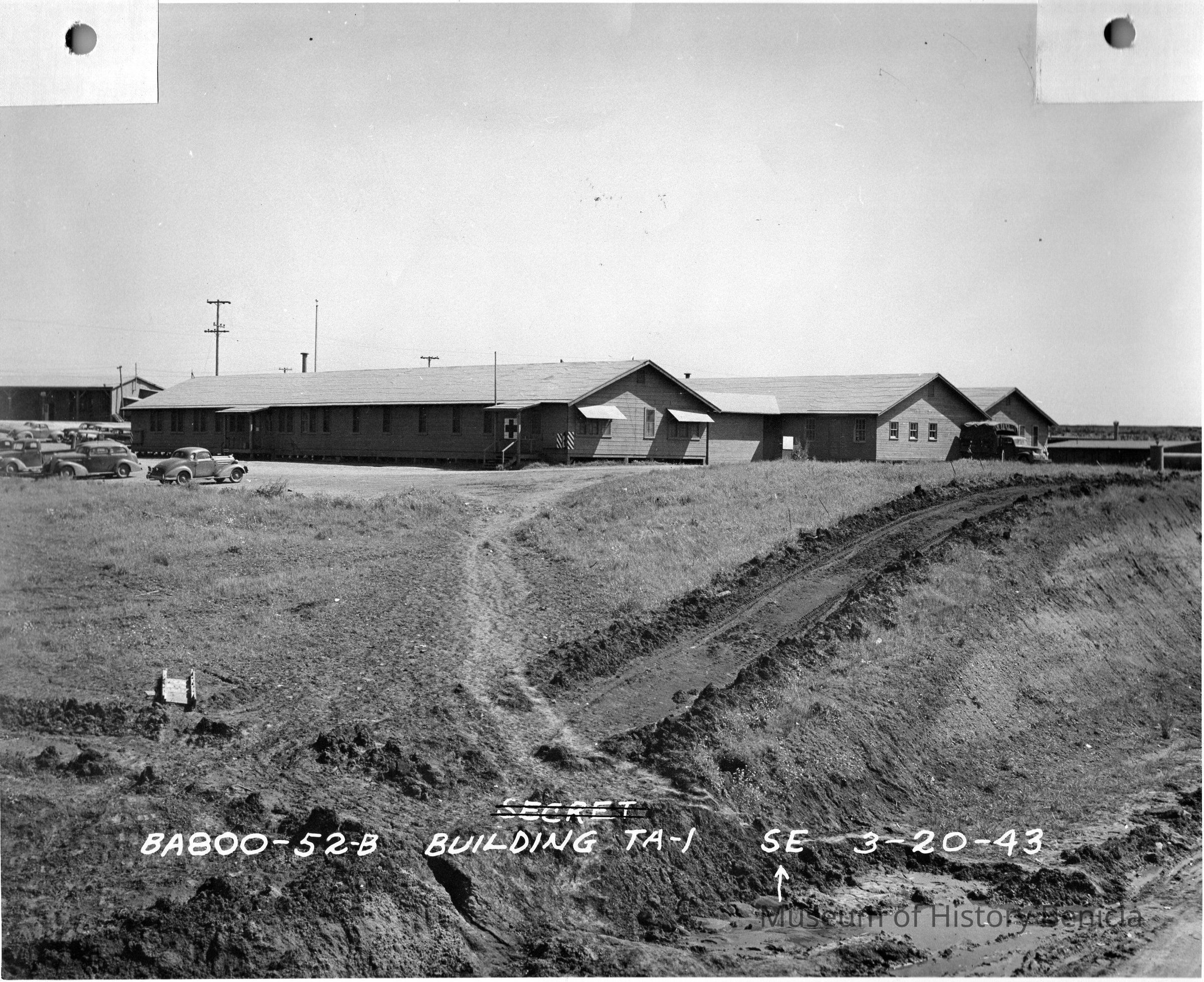 B/w Benicia Arsenal, Bldg TA-1, Temporary Administration Bldg in the magazine area.