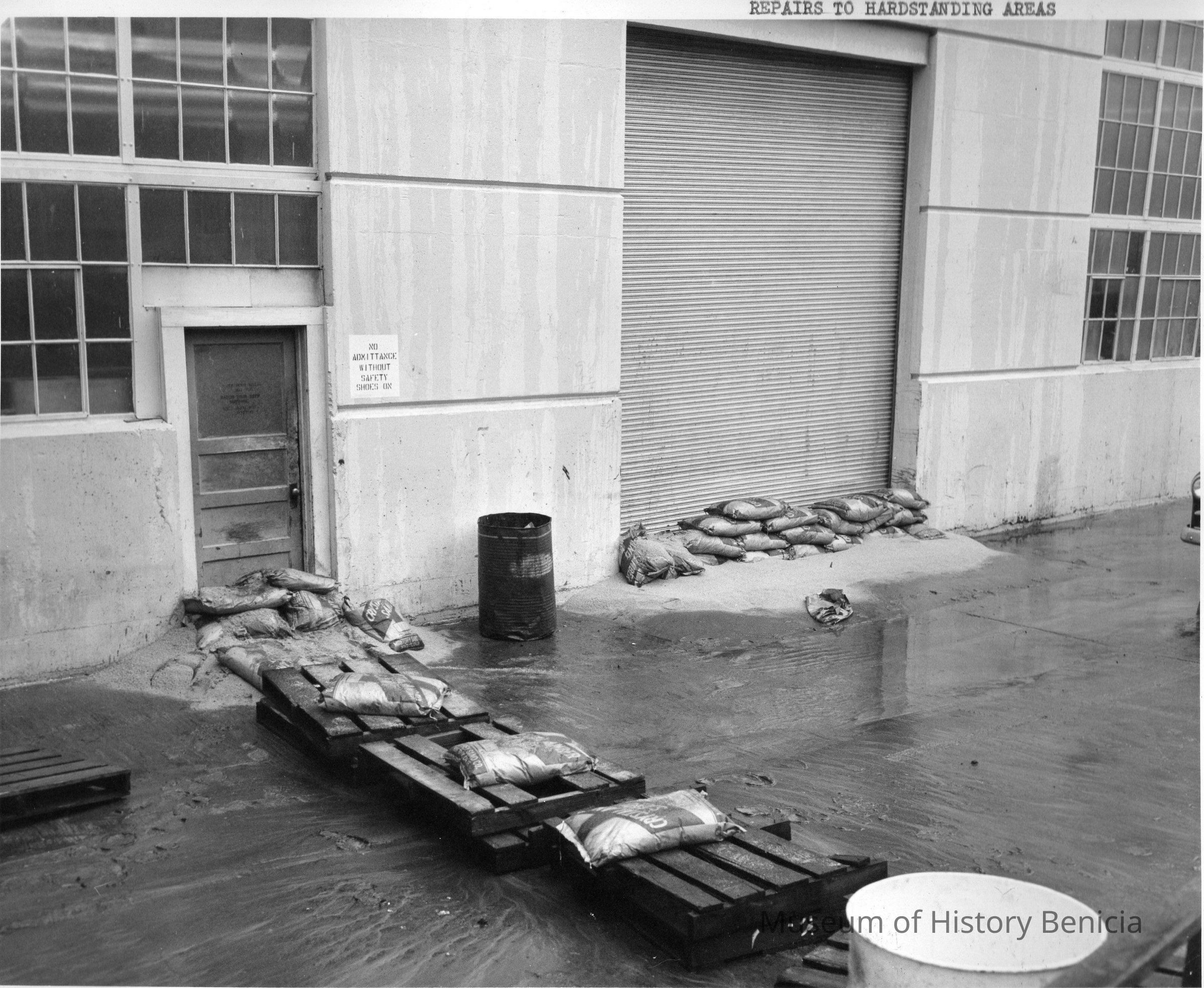 B/w Benicia Arsenal, Flood in the hardstanding areas. Shows Flooding in B.A.