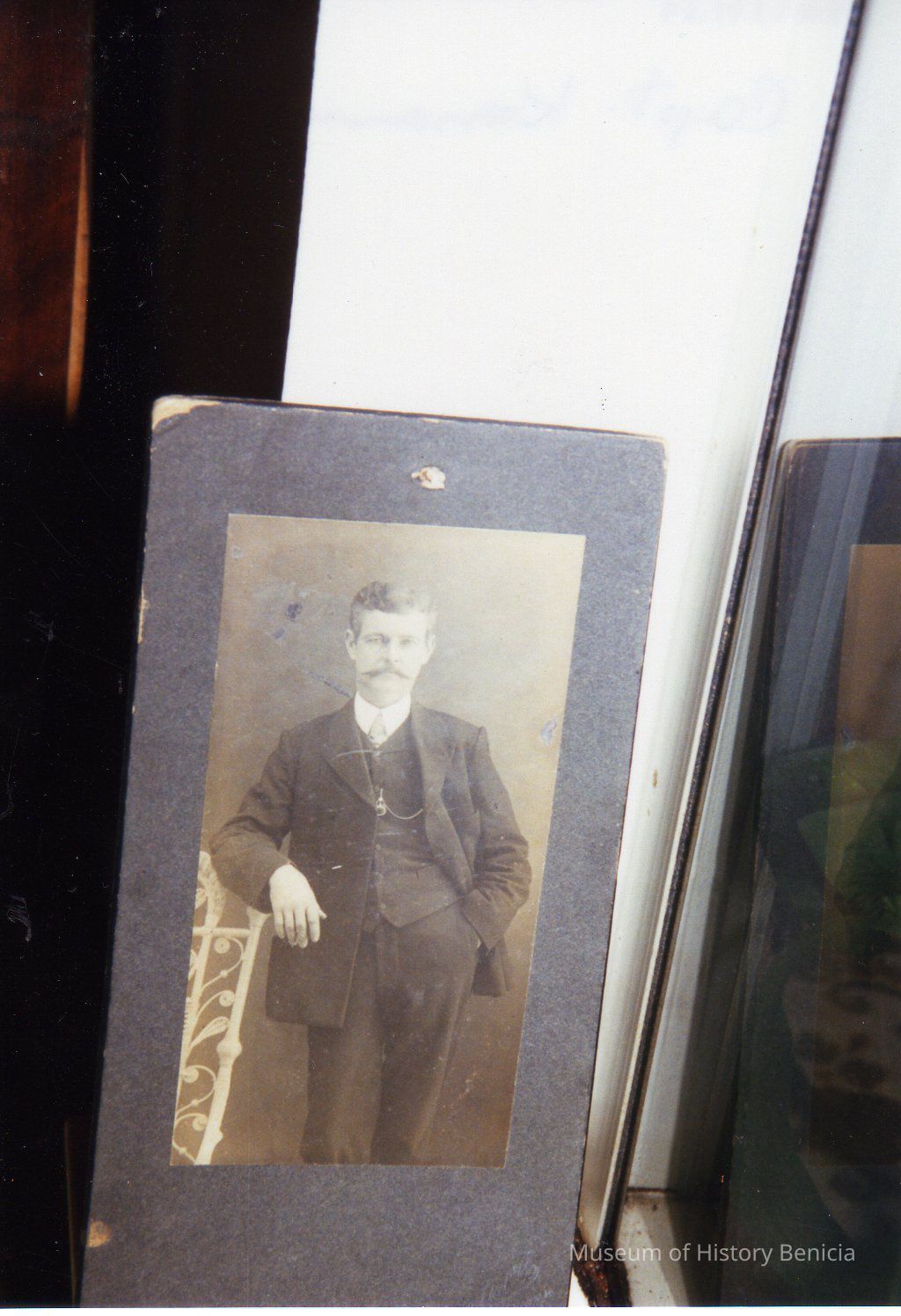 Color photo of photo of Capt. Keenan, one-time captain of Matthew Turner's Brigantine "Galilee", and father of Fr. Keenan, who possesses model of ship.Collection