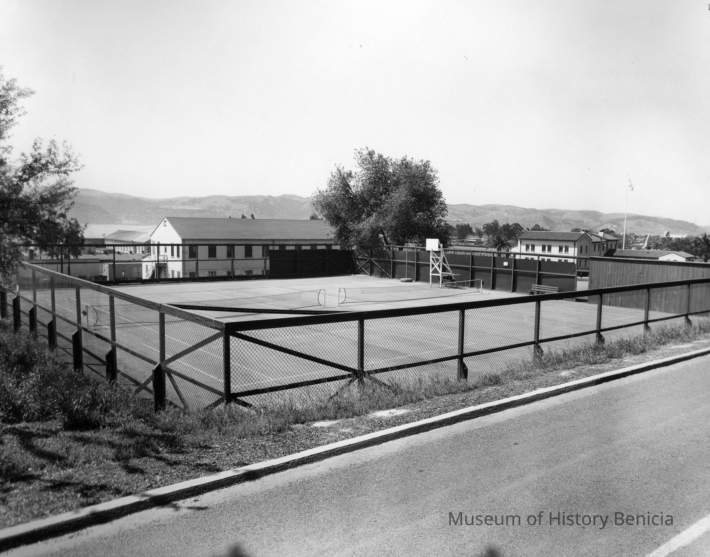 Benicia Arsenal, Bldg 196 in the background & in the foreground are 2 tennis courts.