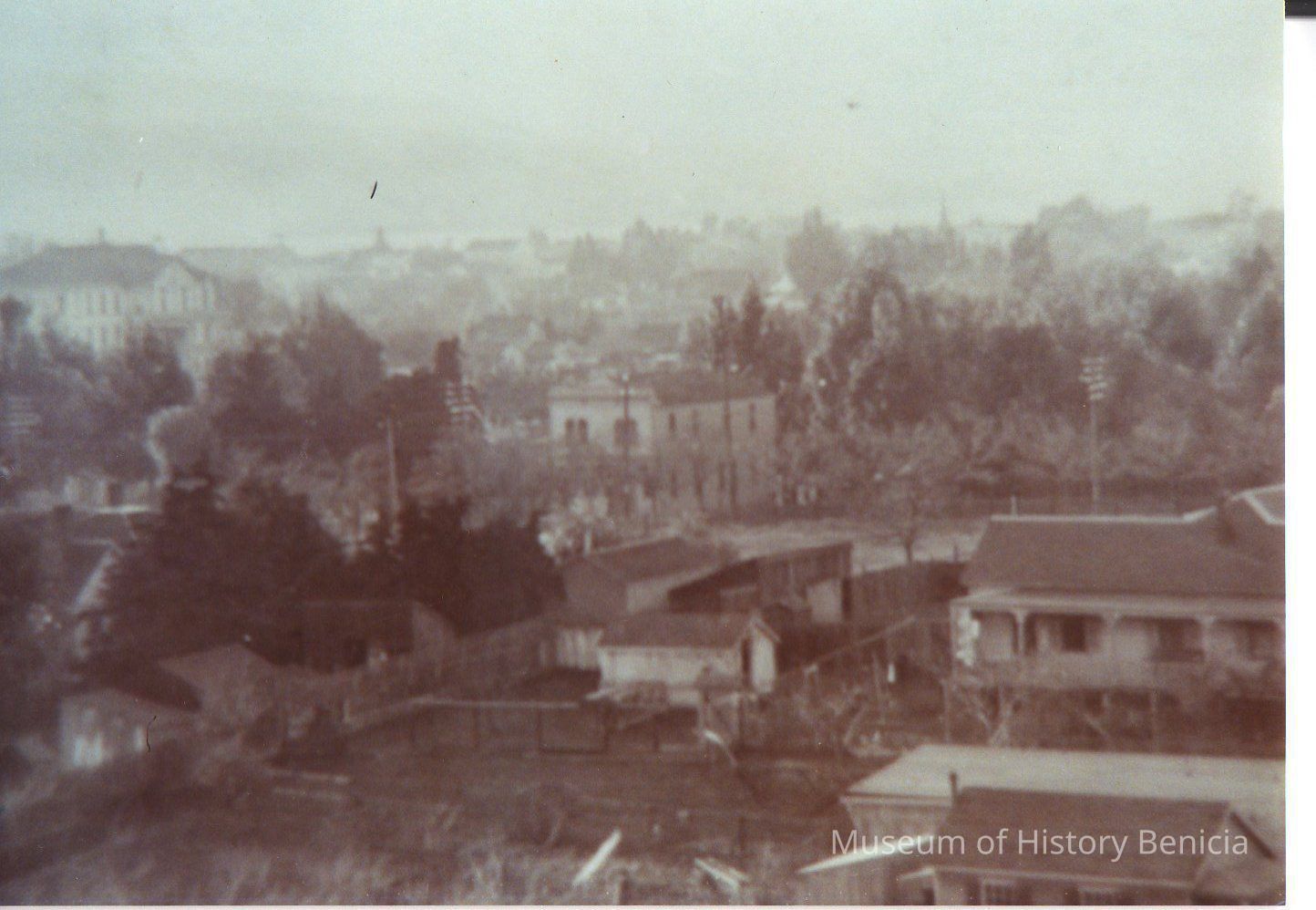 B/W photograph view of Benicia showing grammar school among other buildings; could have been taken from hill area near East 6th St. looking westCollection