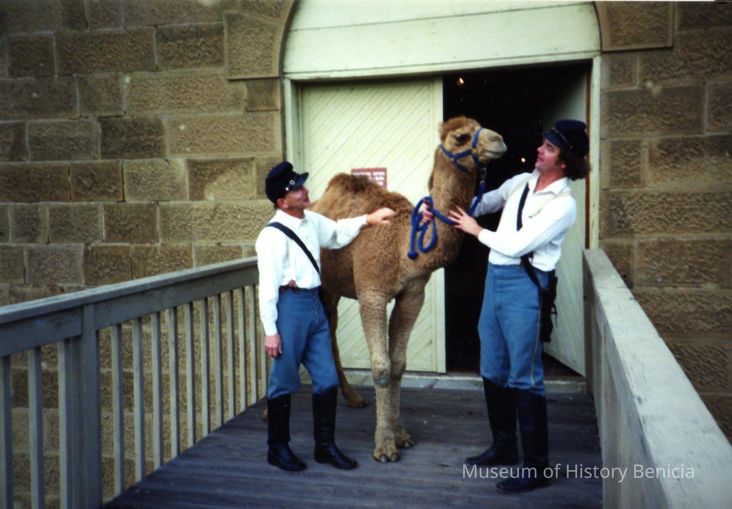 Color photo: caption on back: Larry Rogers, "Atar" and Dave Stevens at Camel Barn Museum Feb 1990