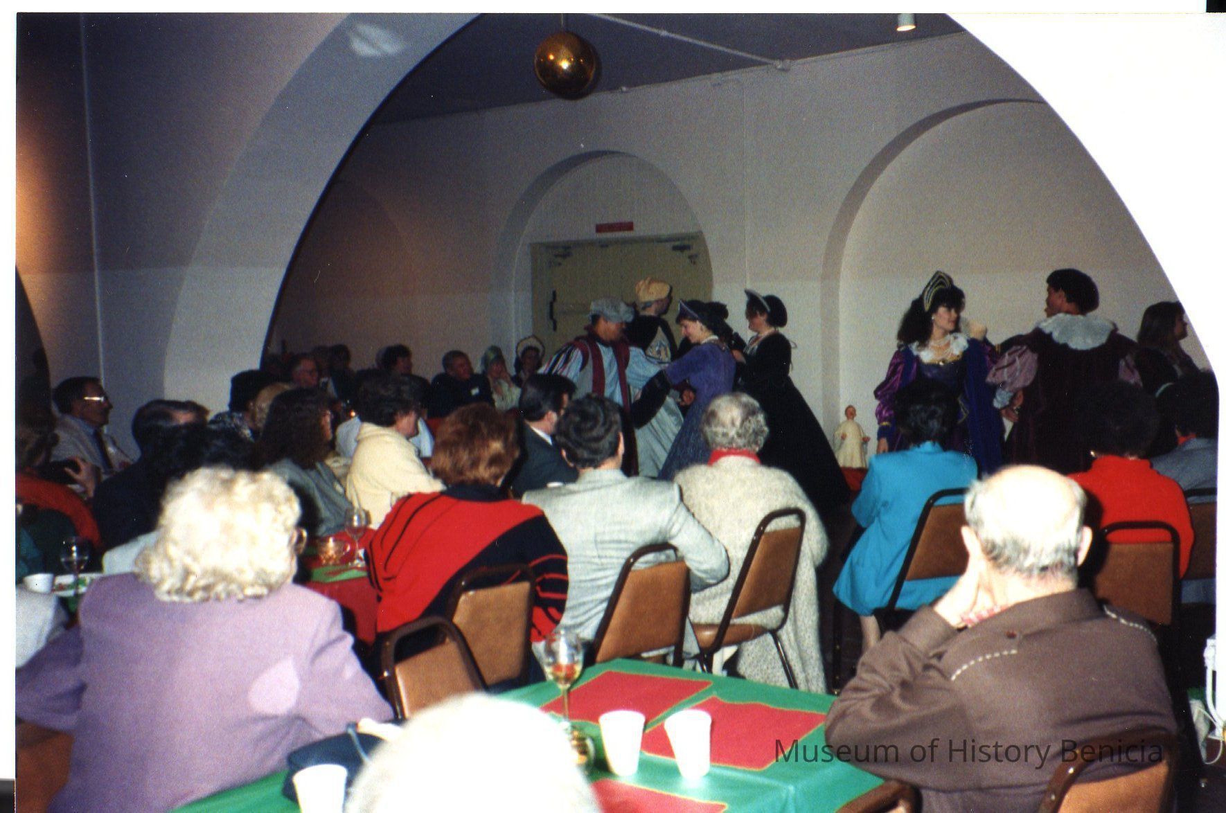 Color photo of the audience watching Renaissance Costumed Dancers at the Camel Barn Christmas party 1991.