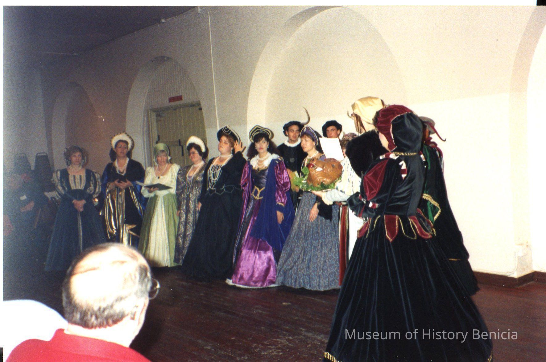 Color photo of the Renaissance Costumed Singers at the Camel Barn Christmas party 1991.