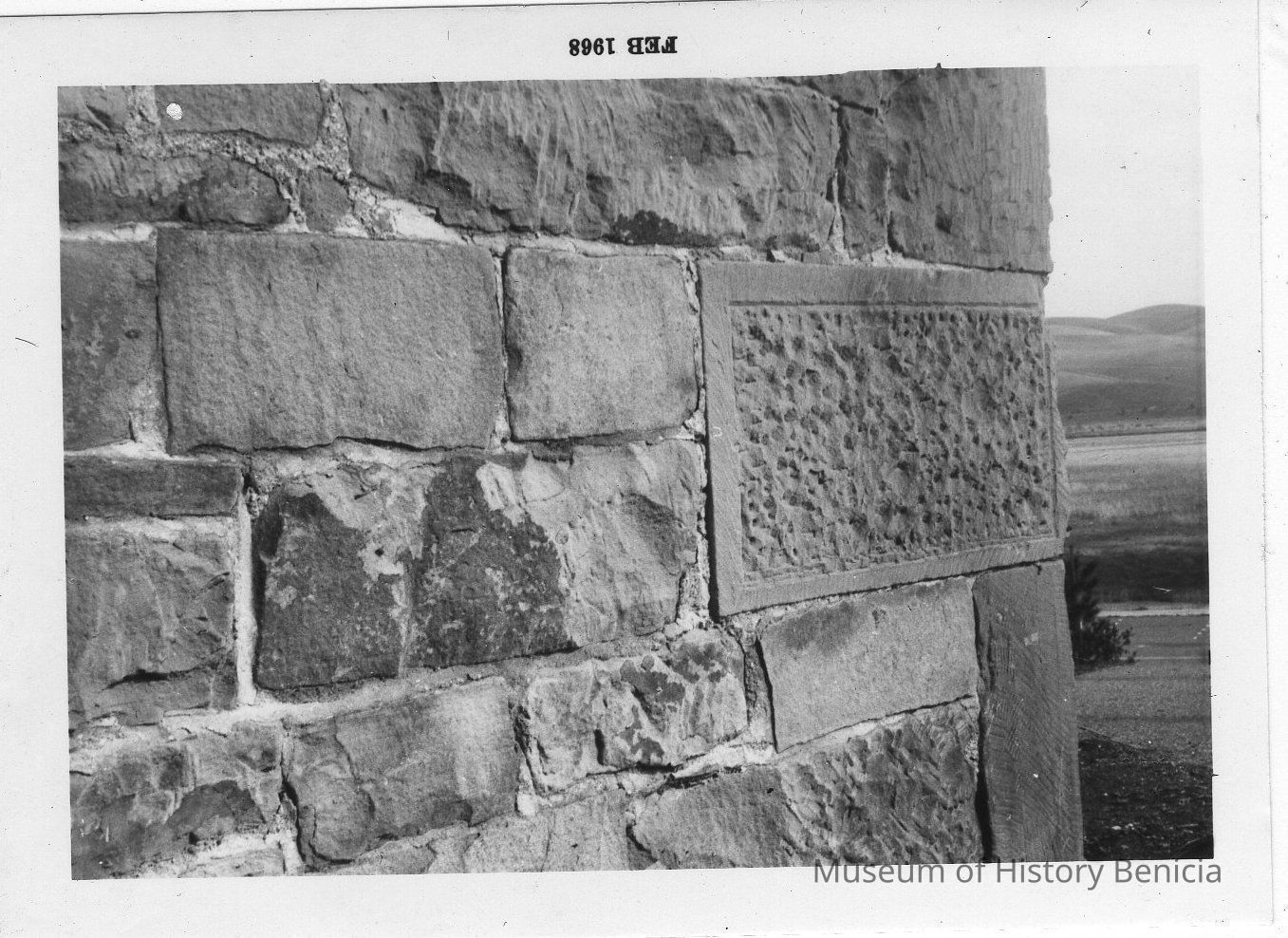 B/W photograph: shows detail of Dillon House sandstone structure