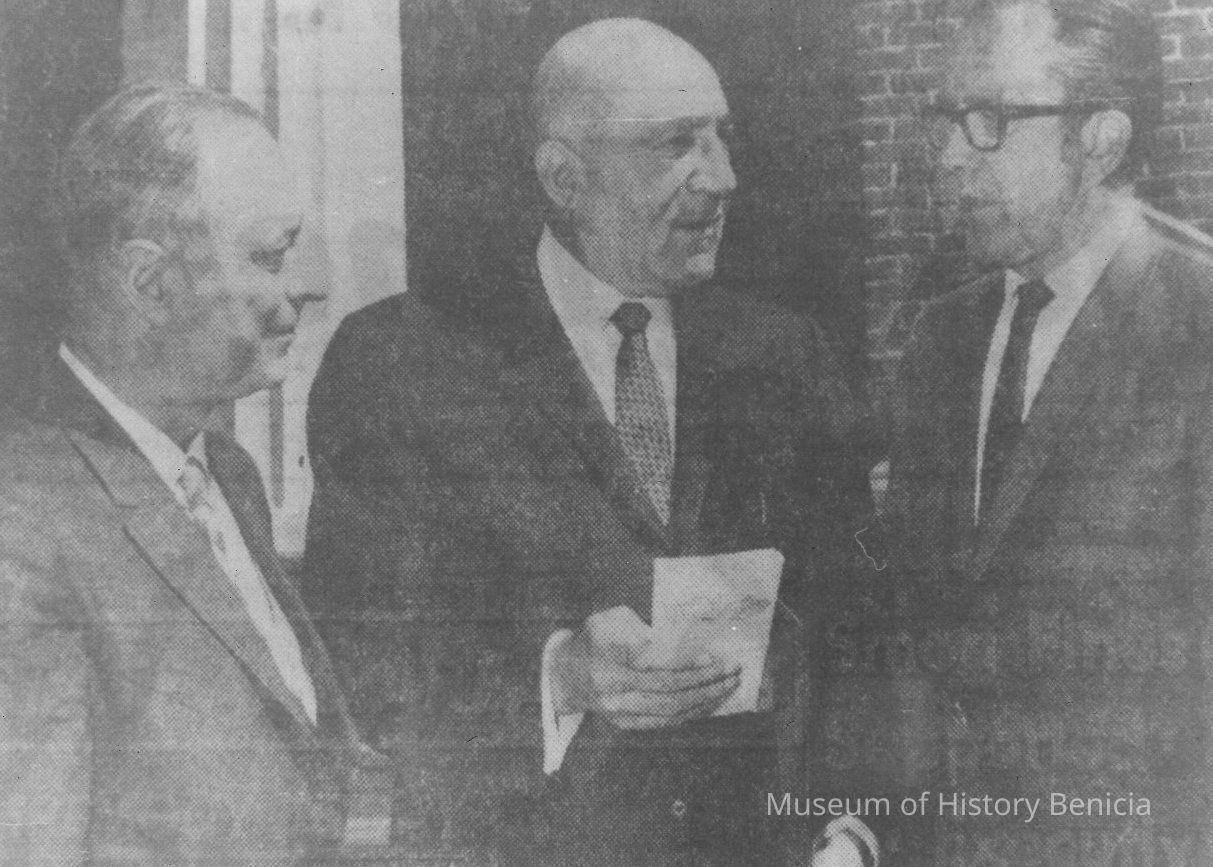 State Fair Employment Practices Commission, met in the Senate chamber, Old State Capitol 4-3-70. R-L, Pier Gherini, Santa Barbara, Chairman; C.L. Dillums of Oakland, oldest commissioner in point of service; and William R. Layfield of the Bank of America, Human Relations Coordinator.Collection