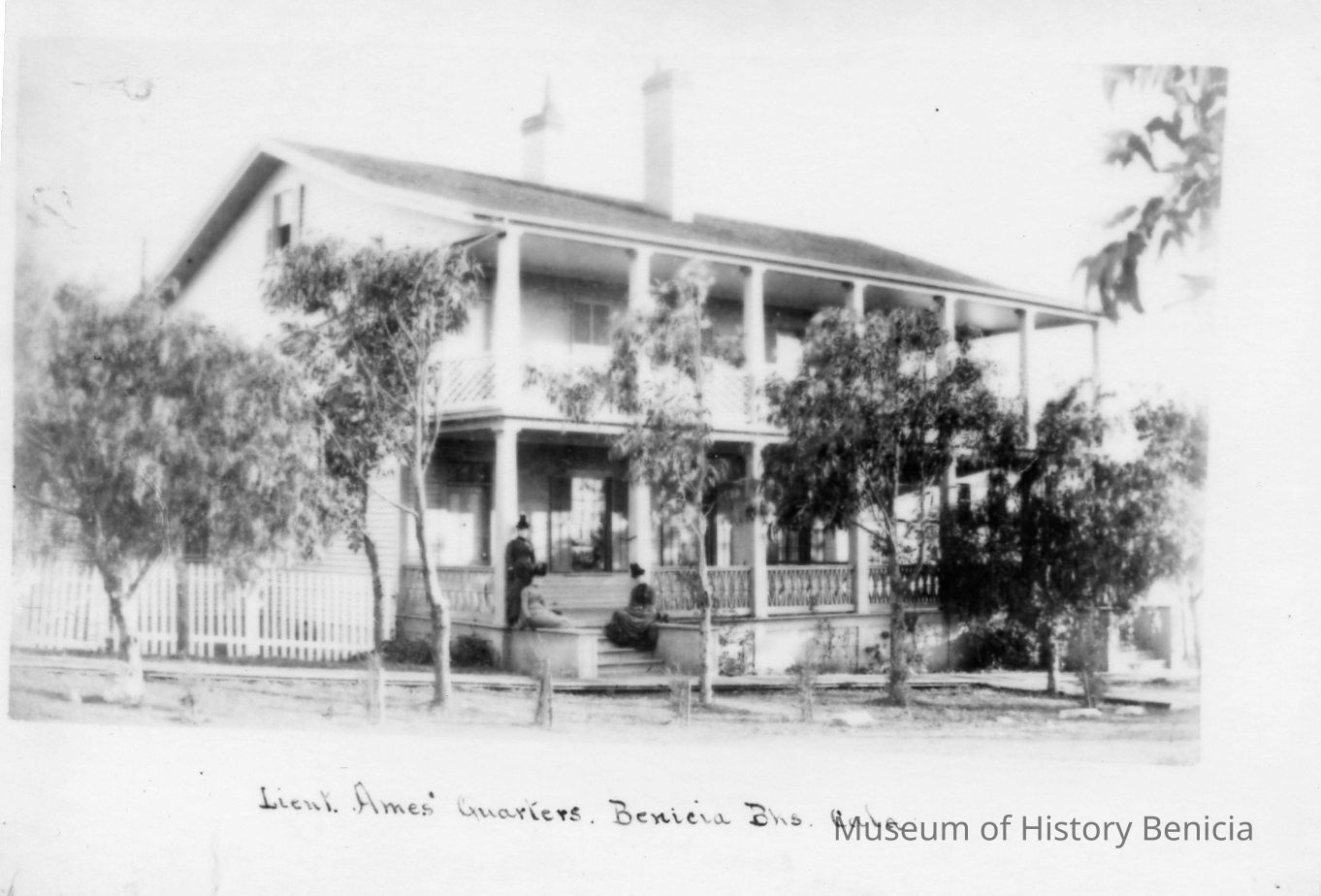 B/W photograph captioned: "Lieut. Ames' Quarters, Benicia Barracks, Calif." (copy of original)