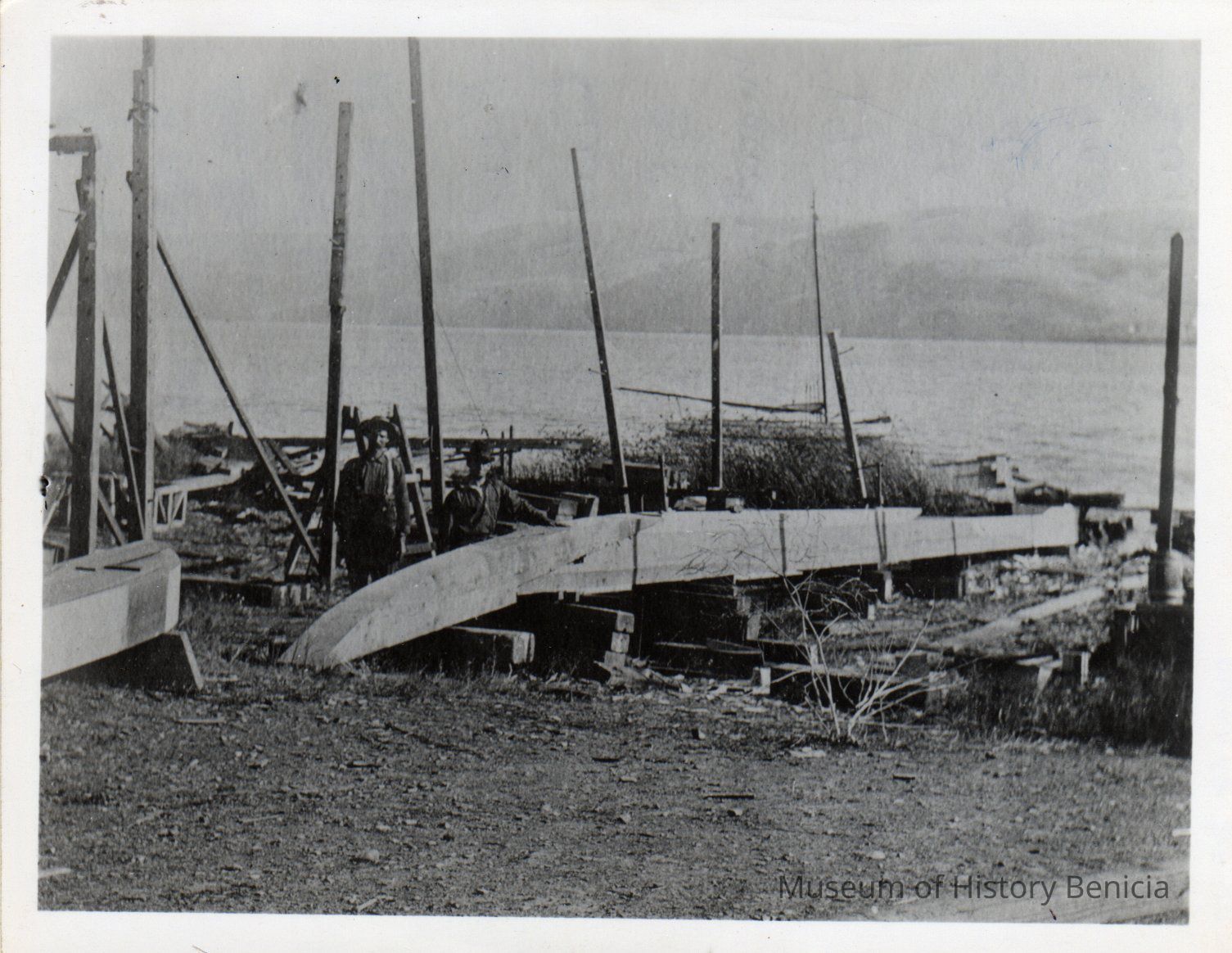 B/W photograph of the keel of the Brigantine Galilee, Built in Benicia, CA in. 1891