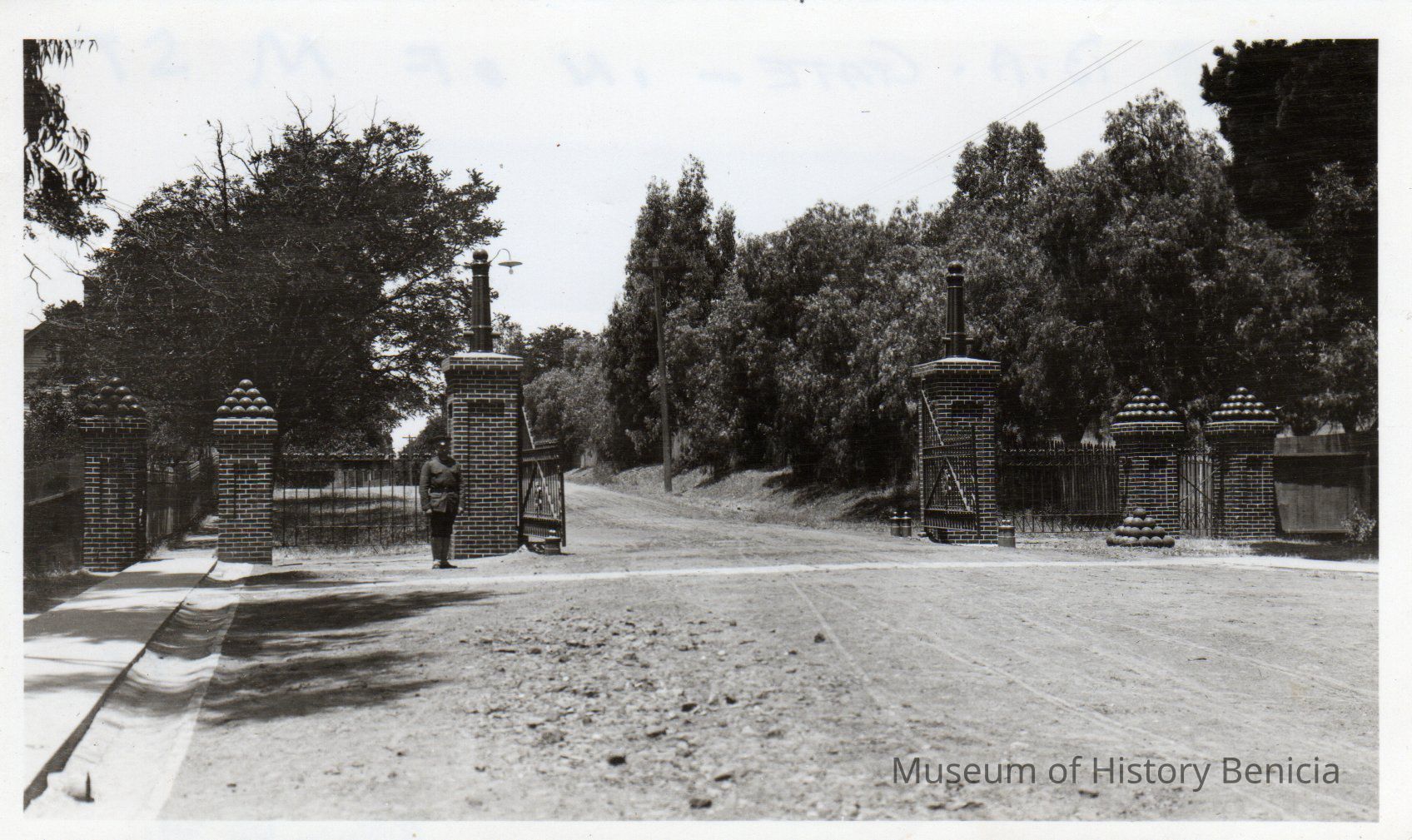 B/W photograph of the main gate of the Arsenal on M Street (now called Military East St.)