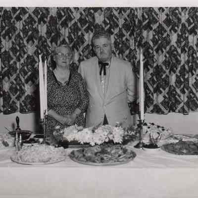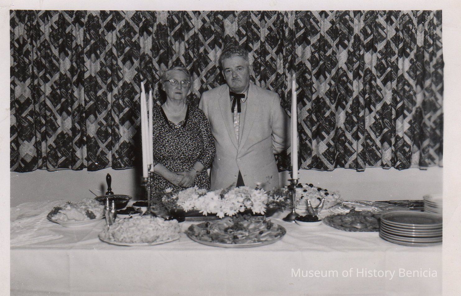 B/W Photograph: Shows student, John J. O'Grady, and teacher, Miss Irene Kelley, at a Reunion of the Benicia Elementary School Class of 1911 held at the home of Olivia and John O'Grady.