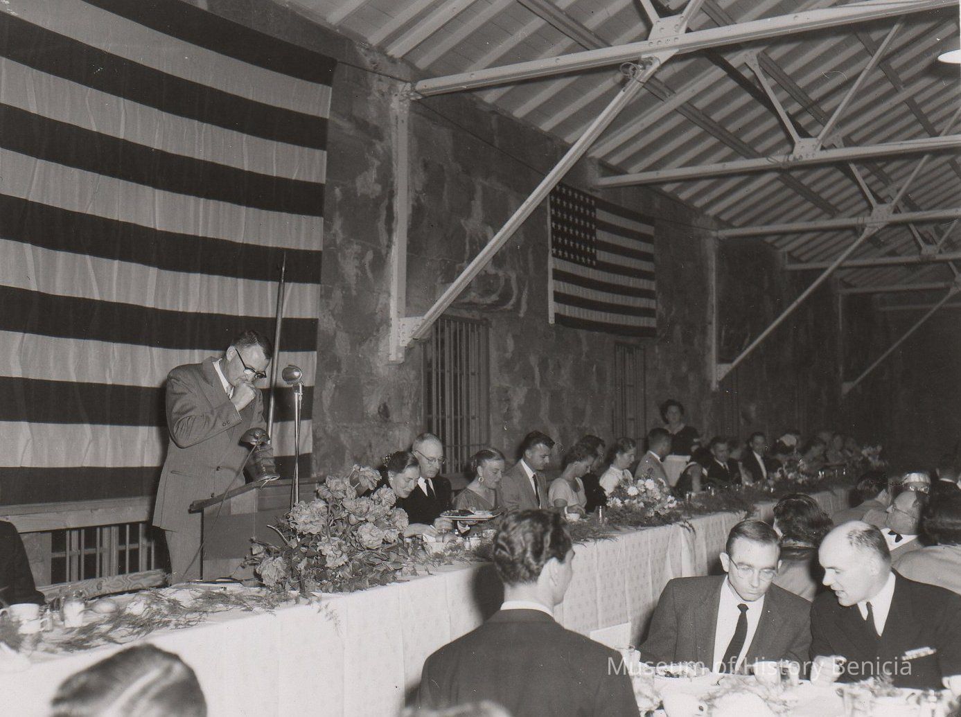 B/W Photograph: Benicia Old State Capitol Celebration Luncheon in Arsenal Clock Tower;