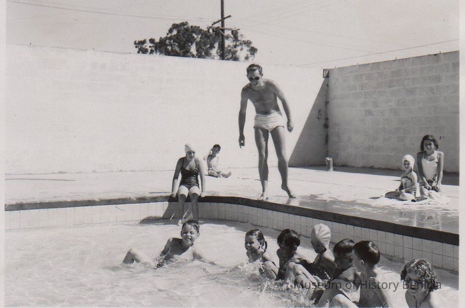 B/W Photograph: A view of the inside of the City Pool on East J Street before its remodeling.