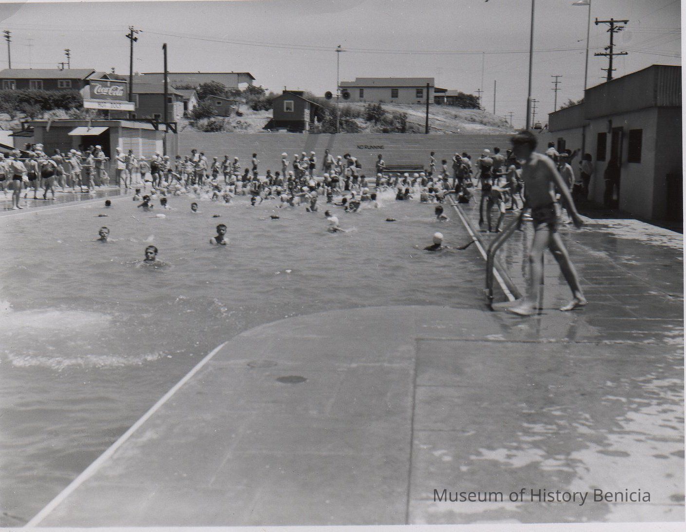 B/W Photograph: A view of the inside of the City Pool on East J Street before its remodeling.