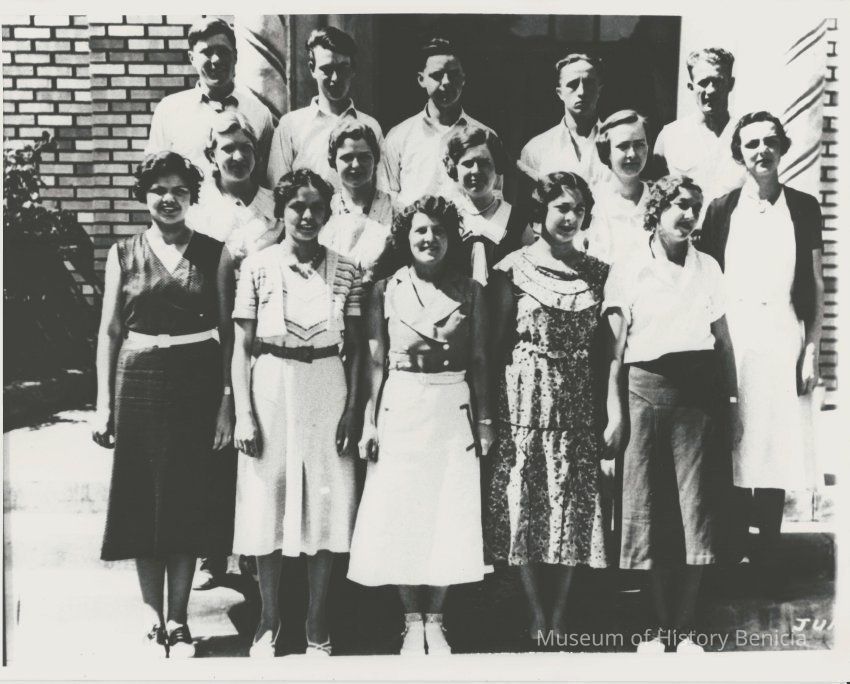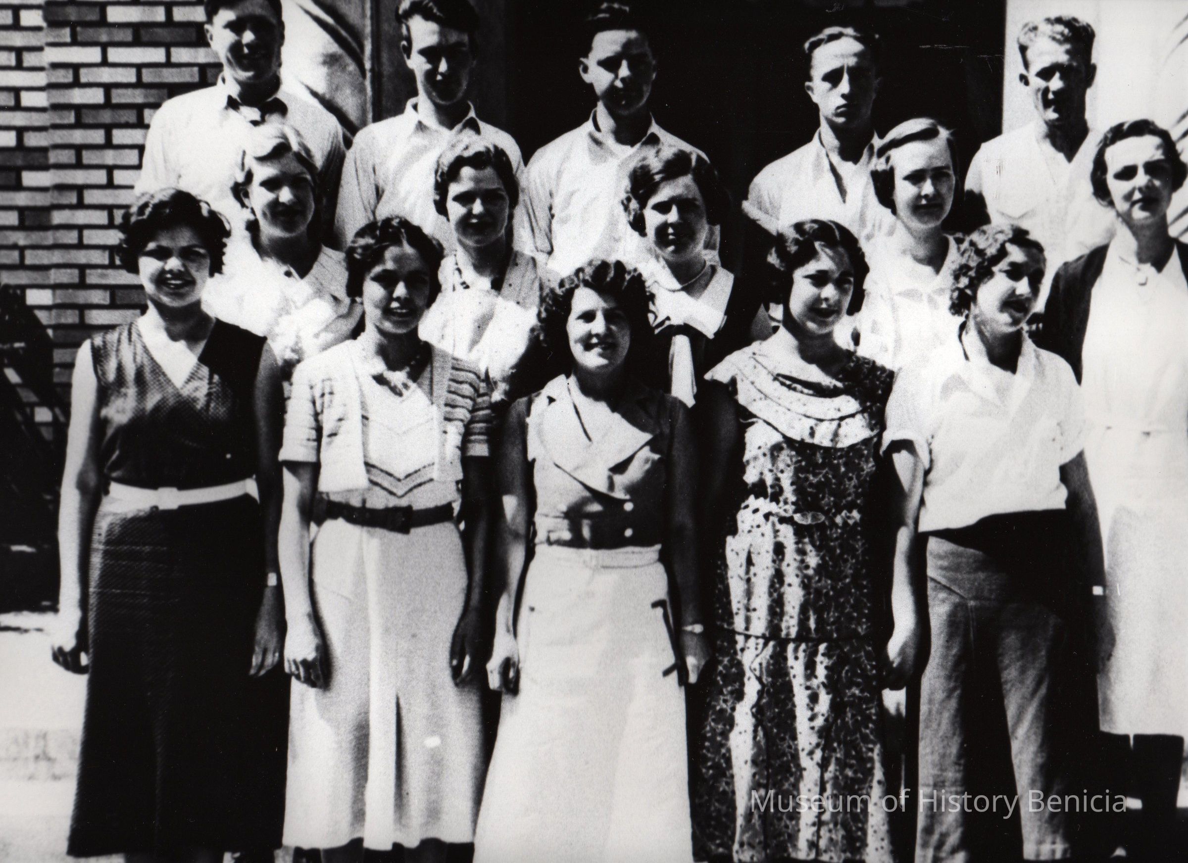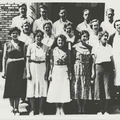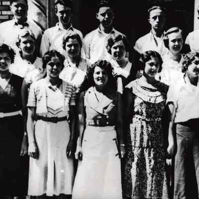 B/W photograph of a group of unidentified men and women (students or teachers?).