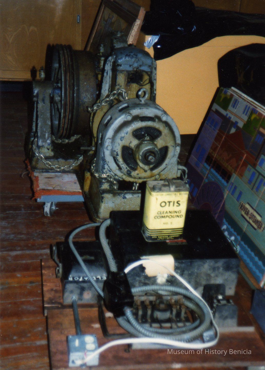 Color photograph of the elevator motor from Building No. 9 after removal from elevator shaft.