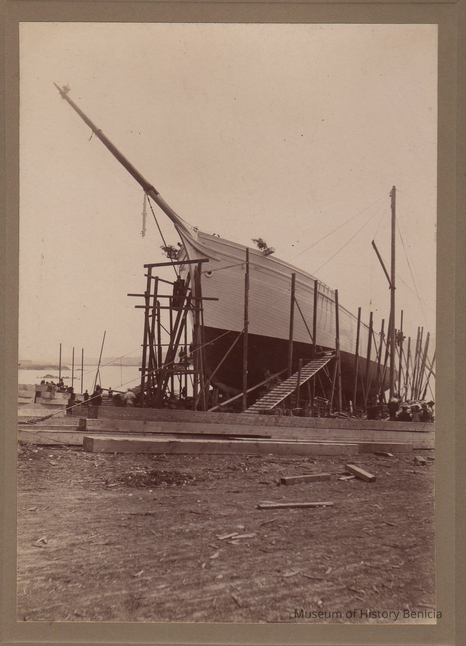B/W Photograph: ship being built at Matthew Turner Shipyard. Ship is not identified.