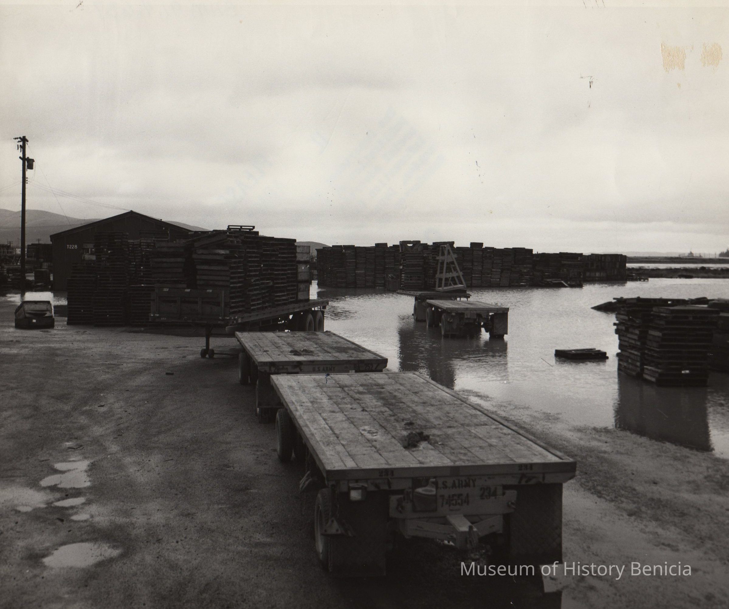 B/W Photograph: parking/storage lot flooding