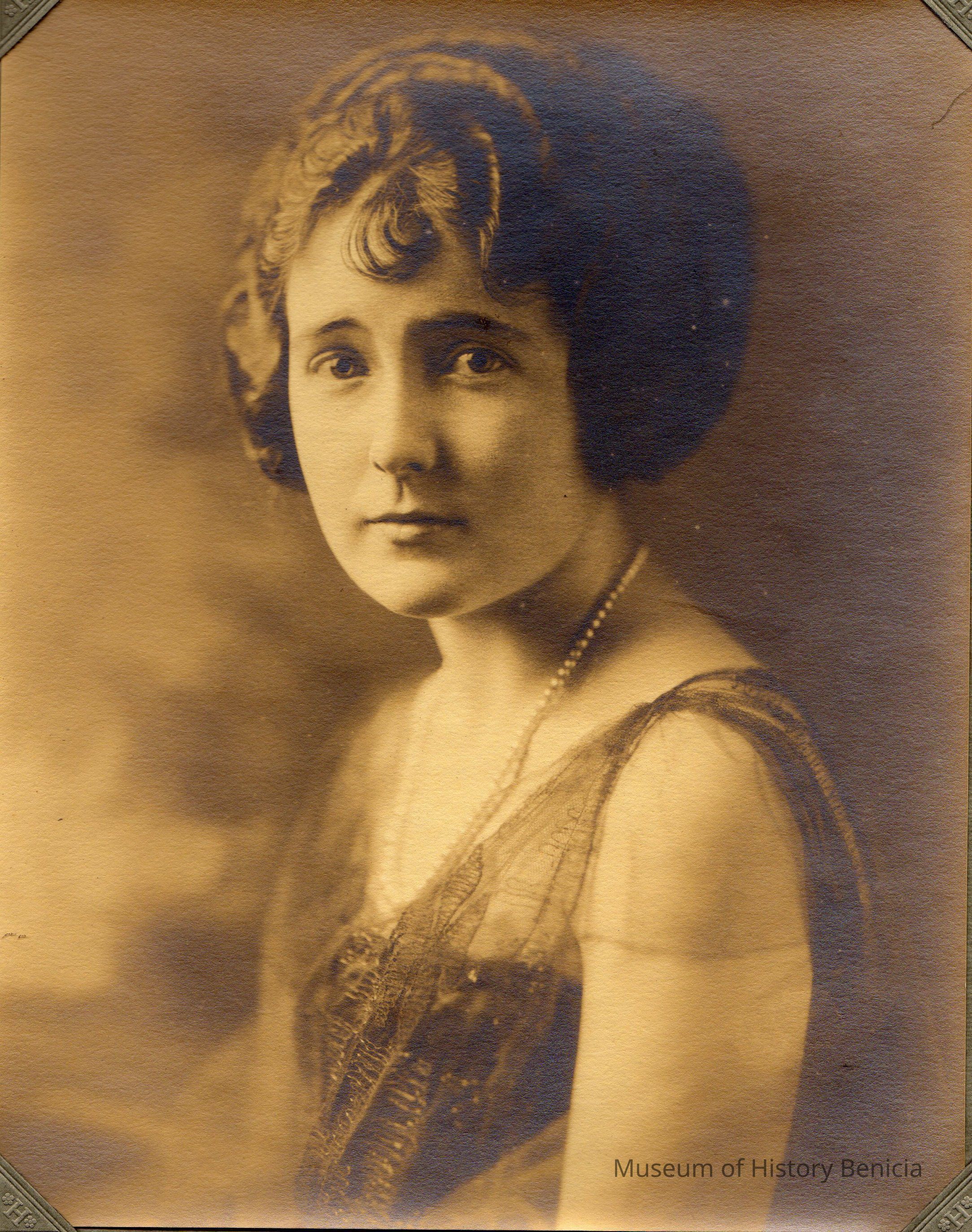 Portrait of an unidentified young woman. She is wearing a pearl necklace.