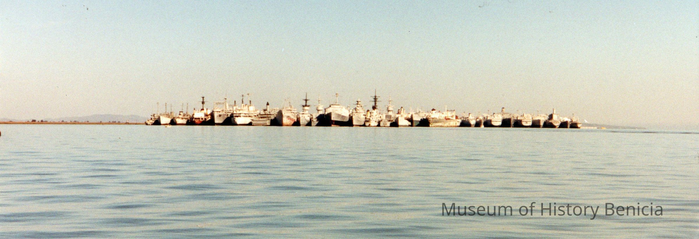 Color photograph. Panoramic view of the moth ball fleet.