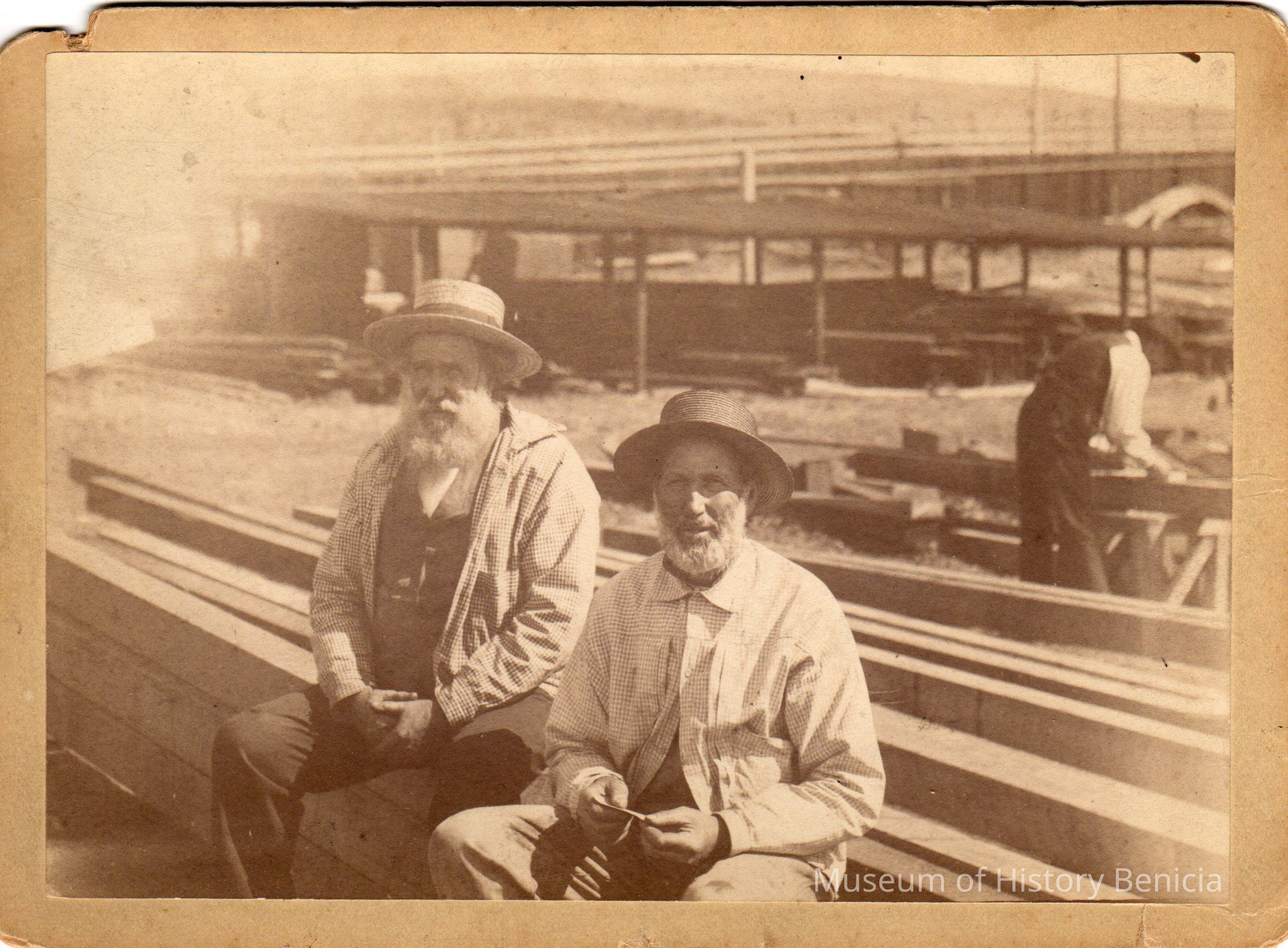 Sepia toned photograph of Pa Turner (Matthew Turner) and his brother Horatio, Benicia Ship Yard.