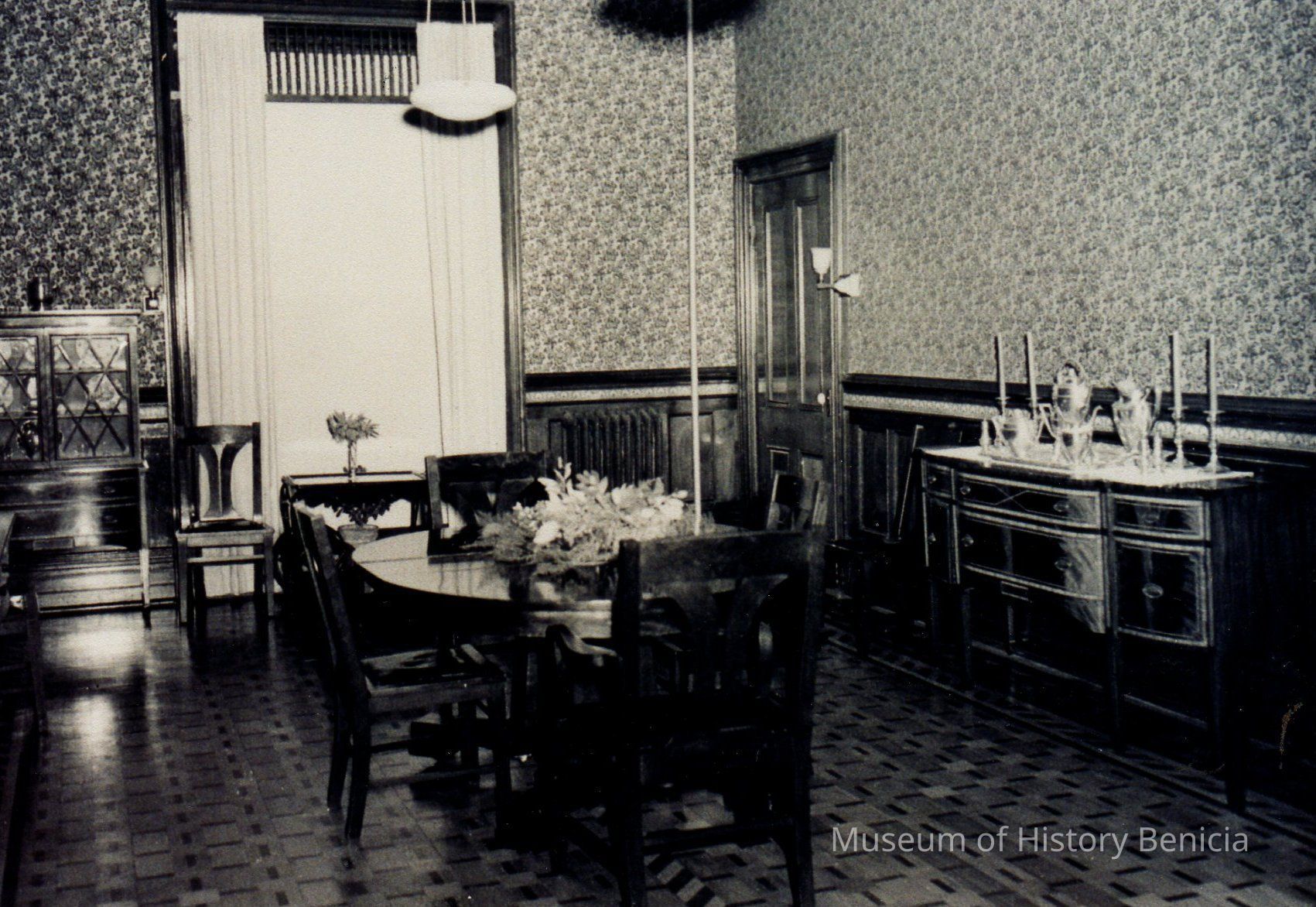 B/W photograph furnished interior room of the Commanding Officer's Quarters Benicia Arsenal