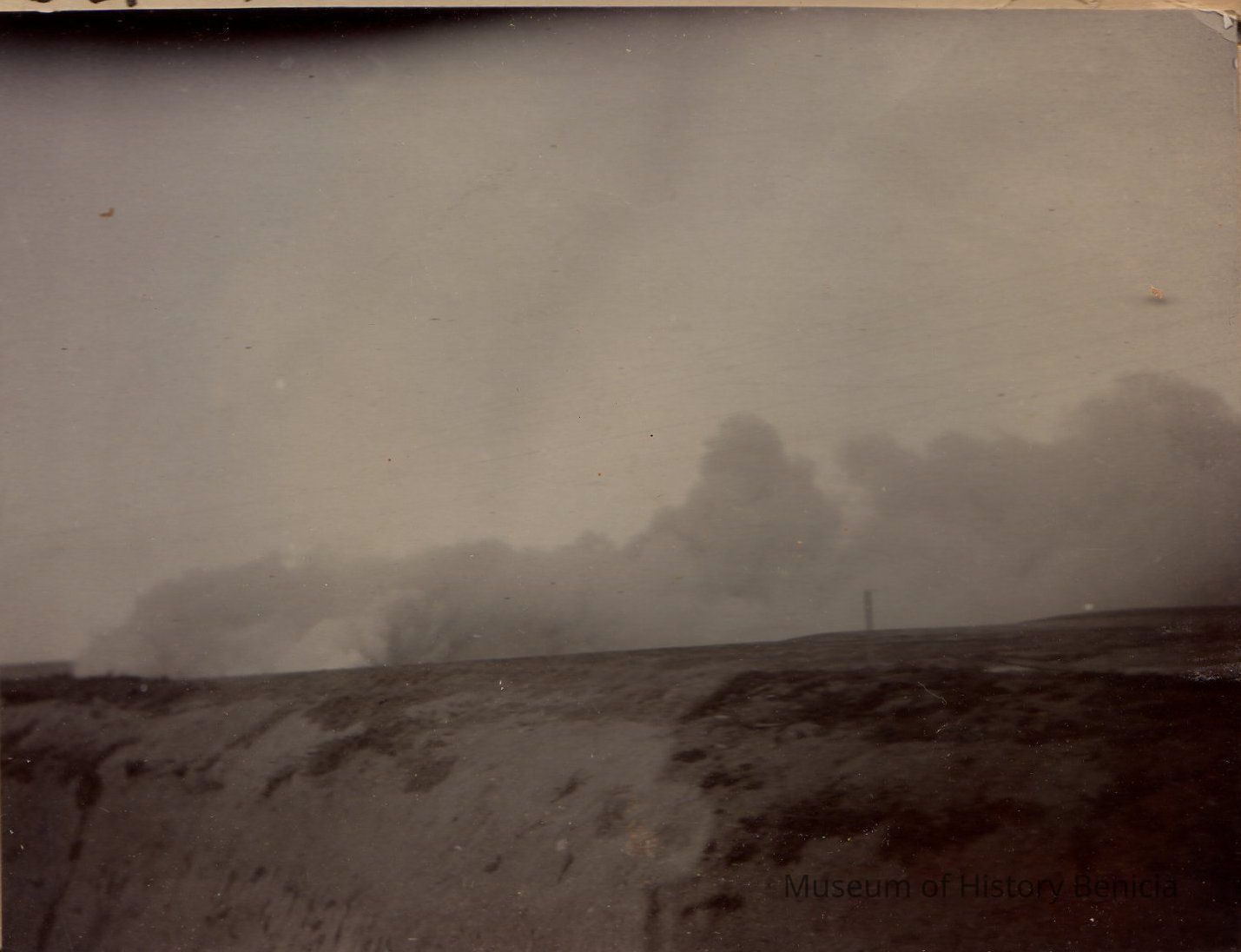 B/W photograph on white album paper. written below picture #10: "Prairie Fire" shows smoke a distance away