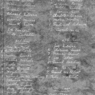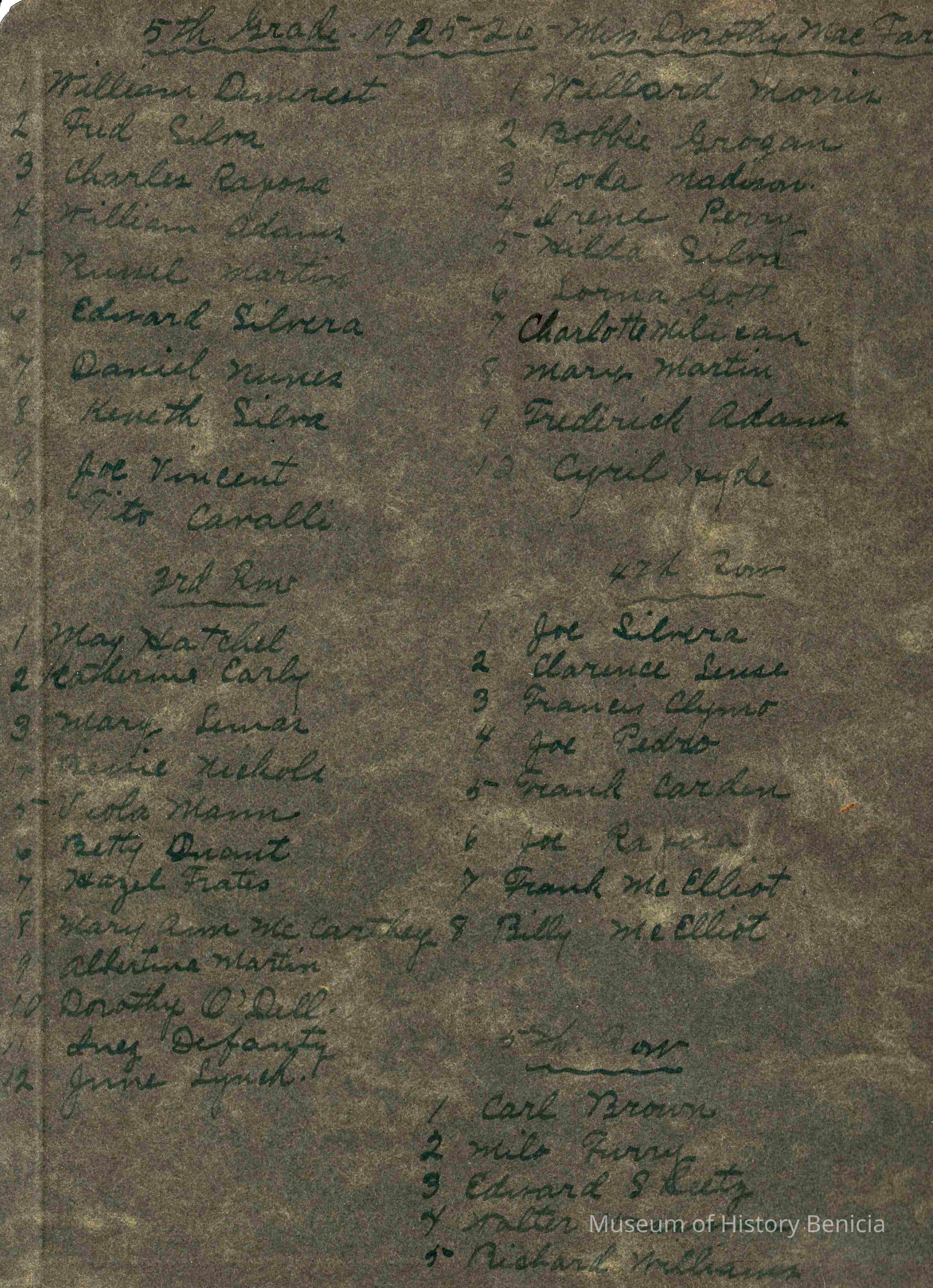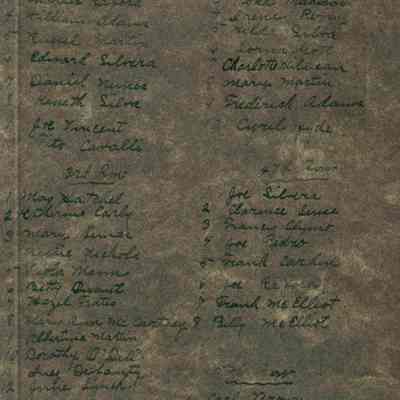third row: May Hatchel, Katherine Early, Mary Lemas, Bessie Nichols, Viola Mann, Betty Durante, Hazel Freites, Mary Ann McCarthey, Albertina Martin, Dorothy O'Dell, Enez Defanty, June Lynch