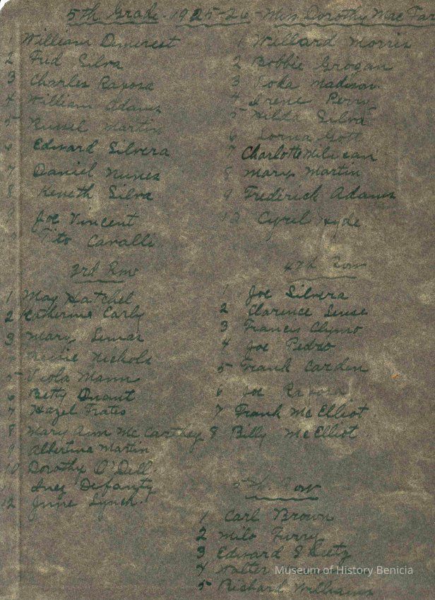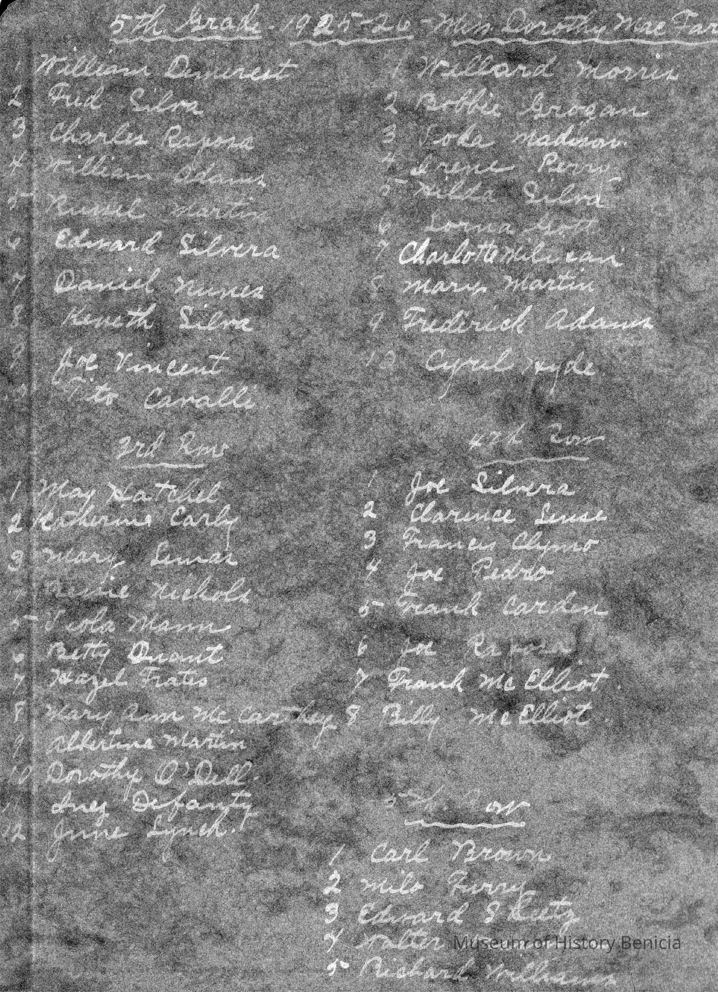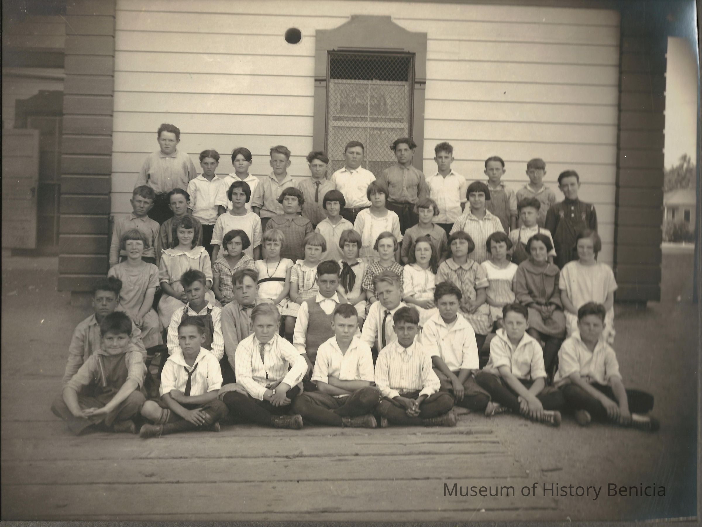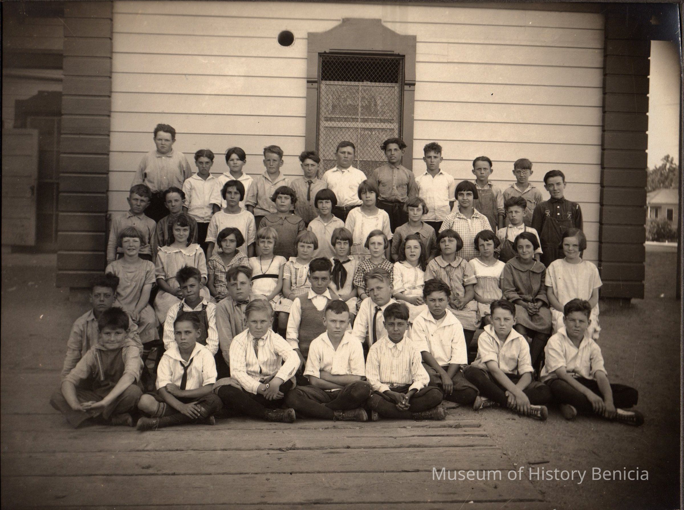 second row: Willard Moris, Bobbie Grogan, Viola (?) Madison, Irene Perry, Hilda Silva, Lorna Gott, Charlotte Milican (?), Mary Martin, Frederick Adams, Cyril Hyde