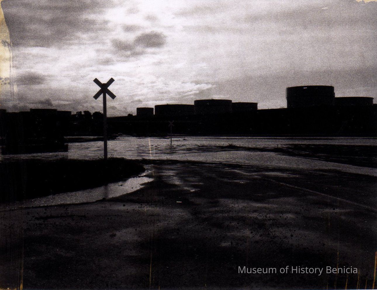 B/W Photograph: One in a series of 18 snapshots of flooded roads and fields in the Benicia Industrial Park.