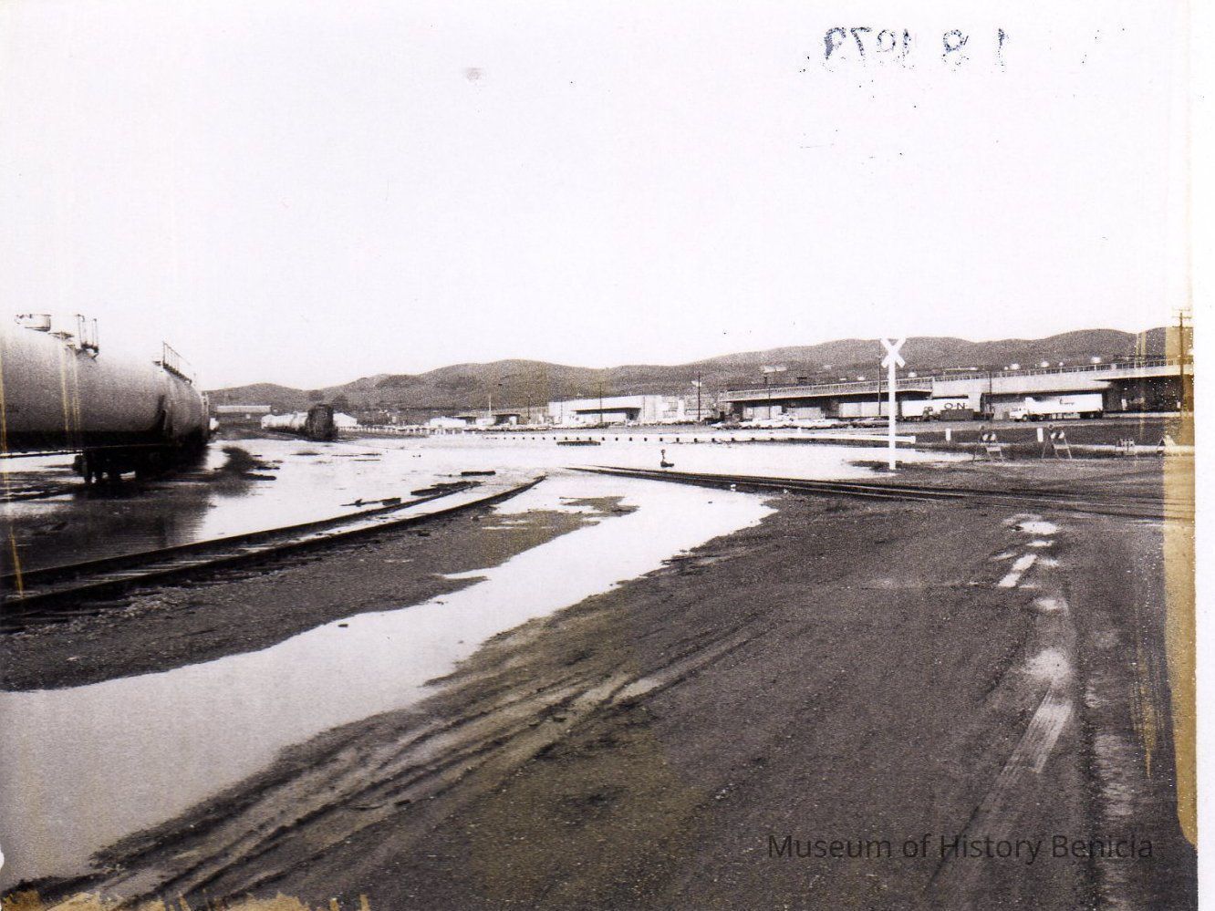 B/W Photograph: One in a series of 18 snapshots of flooded roads and fields in the Benicia Industrial Park.