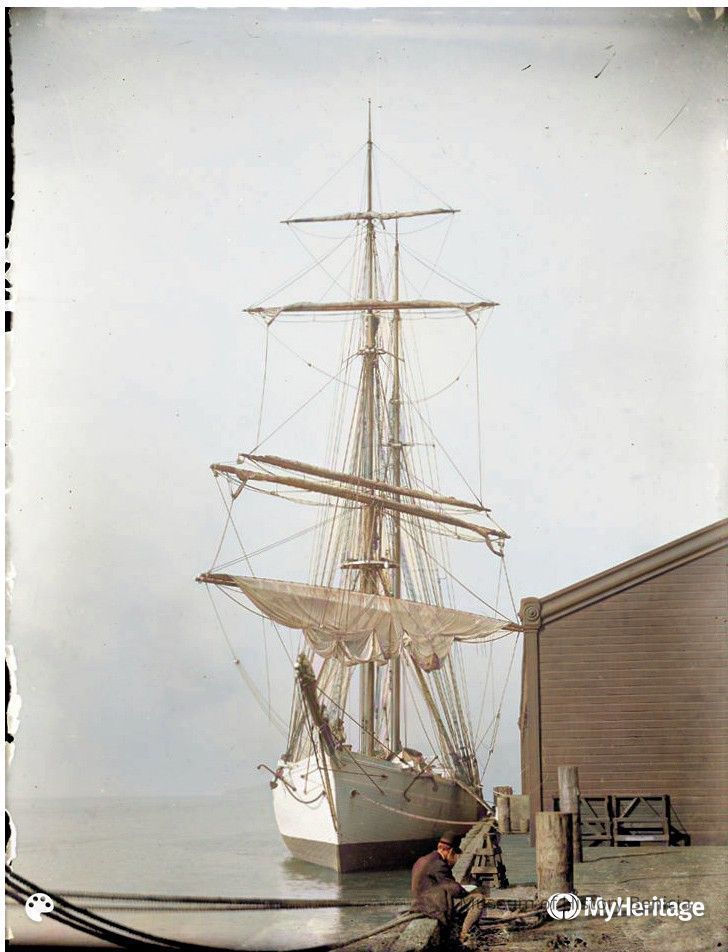 This is a copy of a glass plate negative taken in San Francisco around 1910 of the Brigantine Galilee. This is when the ship was still a two masted ship. The original was sold on EBay and this is just a digital copy of the glass plate.